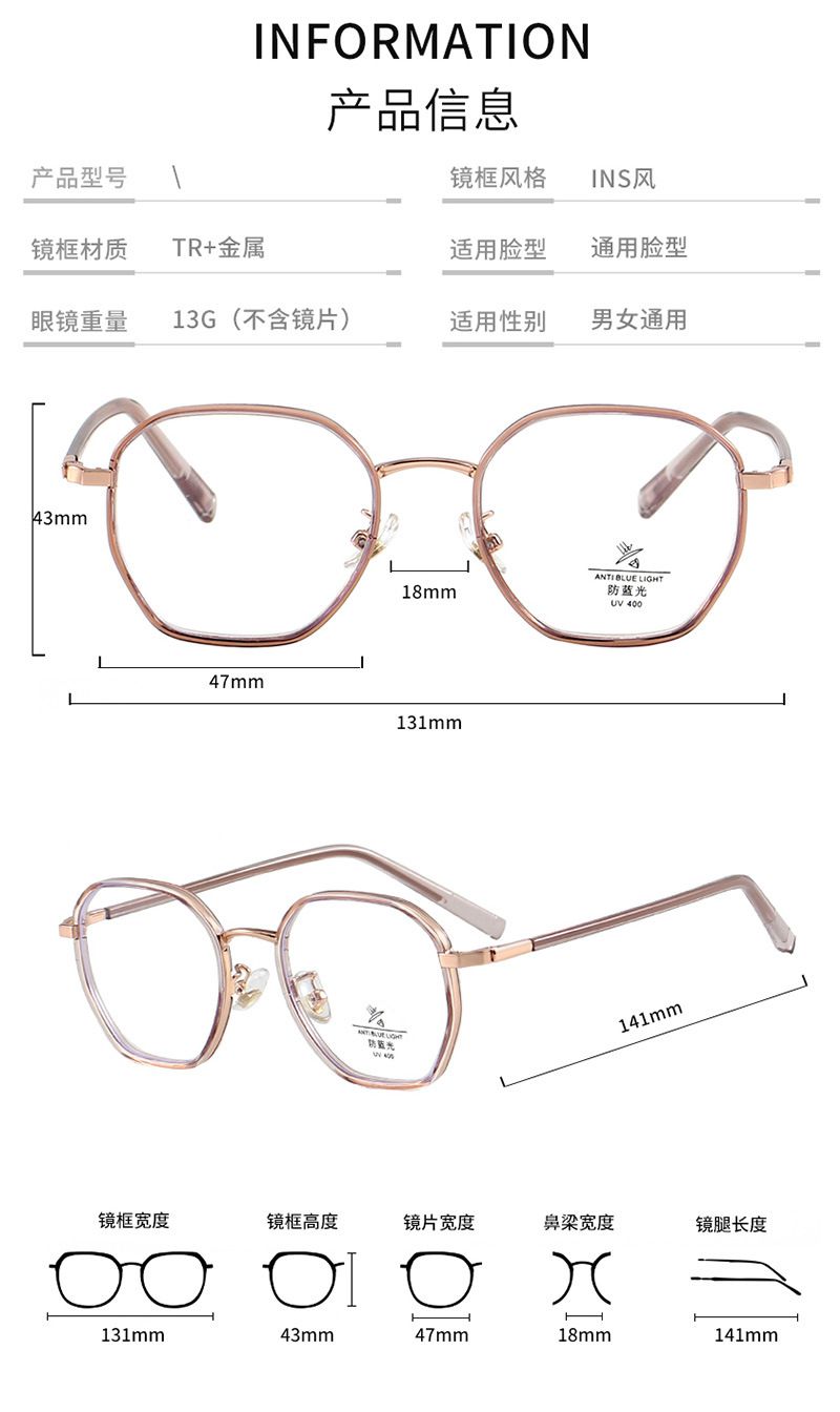 - Материал оправы: металл + пластик TR90