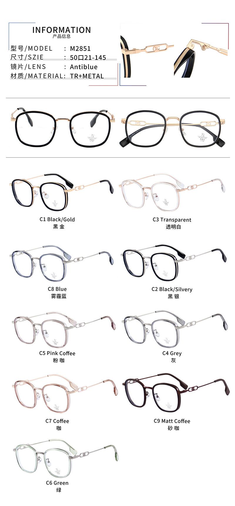 Оправа комбинированная с линзами Blue Ray Cut MAMO M2851