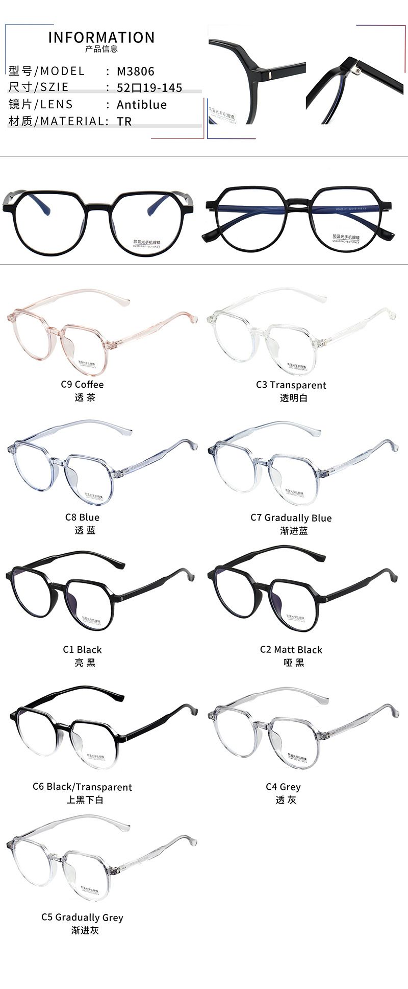 - Материал оправы: пластик TR90, металл