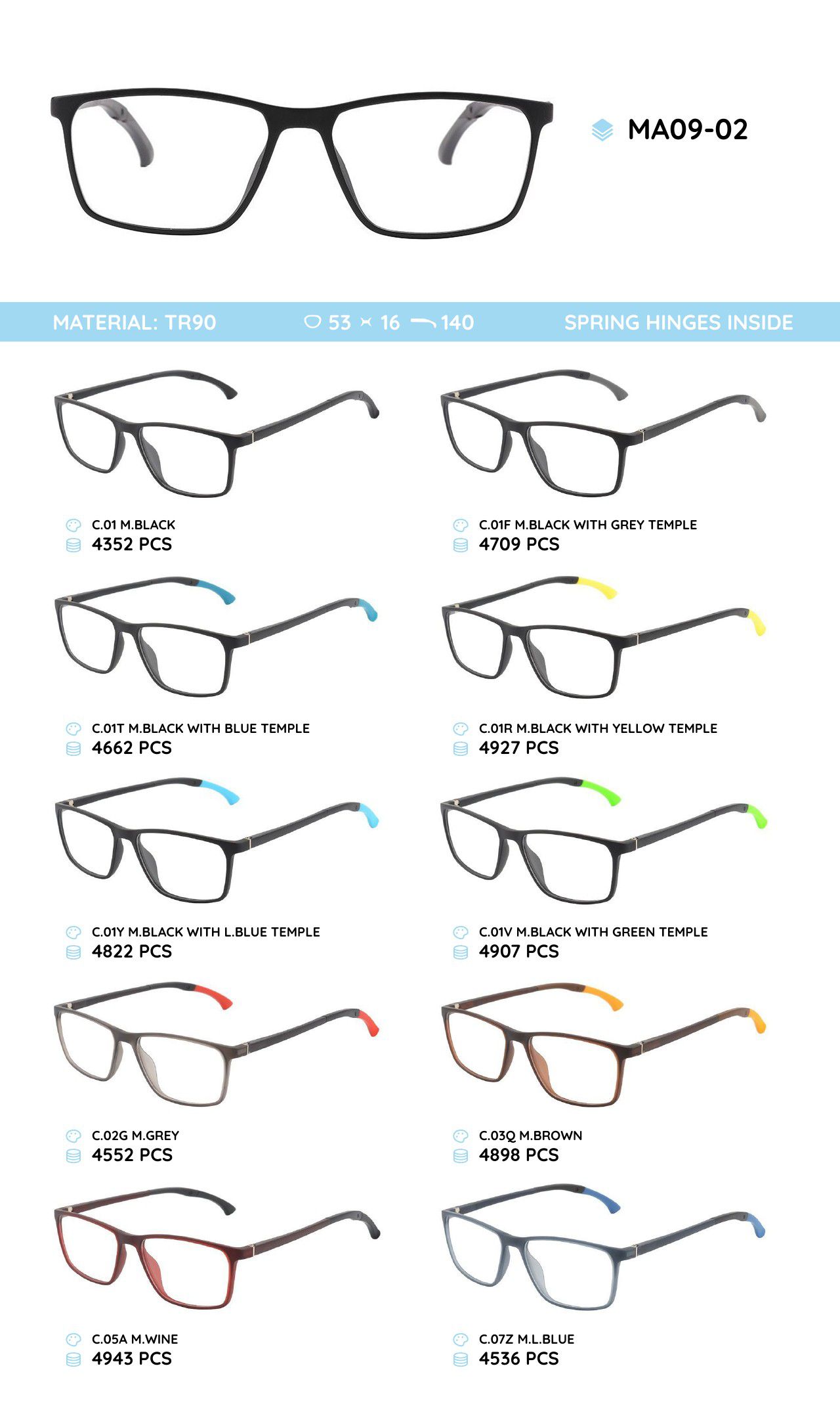 Оправа пластиковая из материала TR-90, с флексом MA09-02