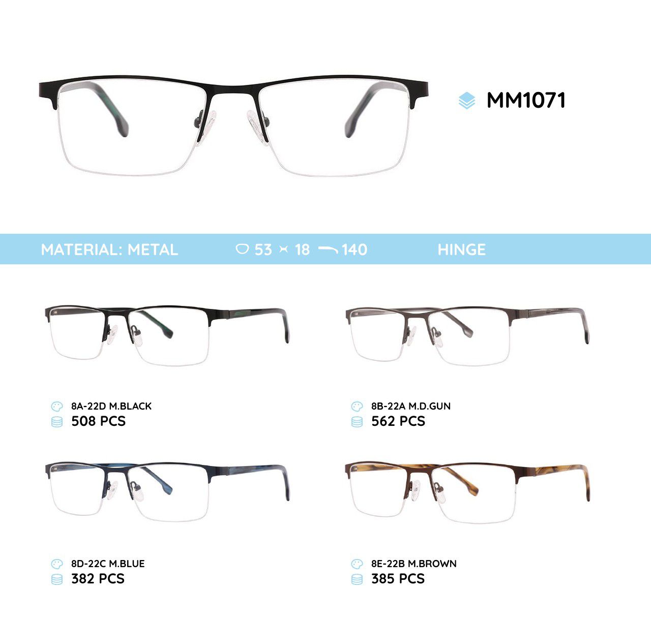 Оправы для очков металлические. Материал - нержавеющая сталь. Оправы хорошо держат свою форму, в тоже время эластичны в работе при изготовлении очков, высокого качества, имеет приятные тактильные свойства, устойчивы к повреждениям, легки, обладают гипоаллергенными свойствами. Многие модели декорированы стразами, с элегантными заушниками и флексами (flex hinges). Модный дизайн. Данная коллекция оправ высокого качества, проходит штучный контроль. В нашем магазине дана низкая цена на товар данной категории, для оптовой продажи. Стандарт CE (европейский стандарт качества).