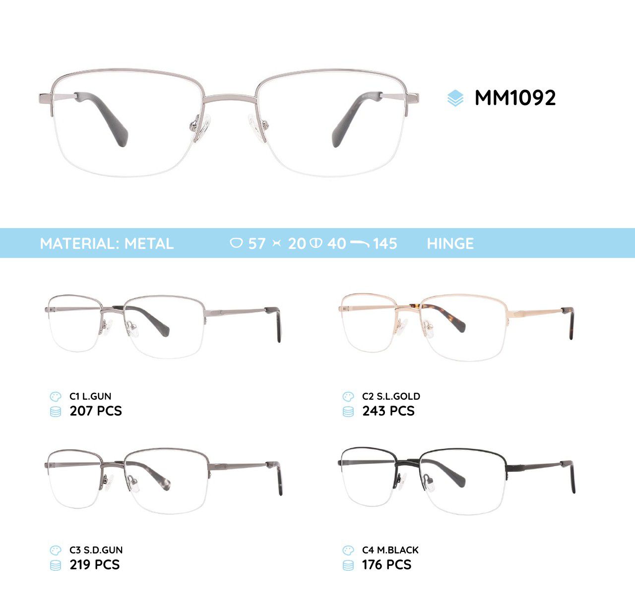 Оправа для очков металлическая полуободковая мужская MM1092