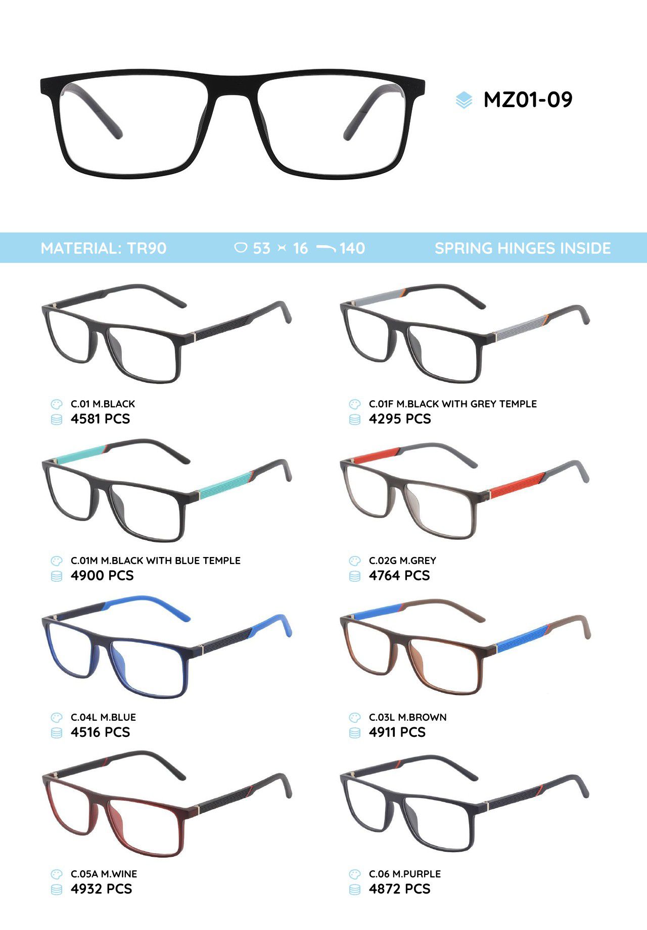 Оправа пластиковая из материала TR-90 с флексом MZ01-09
