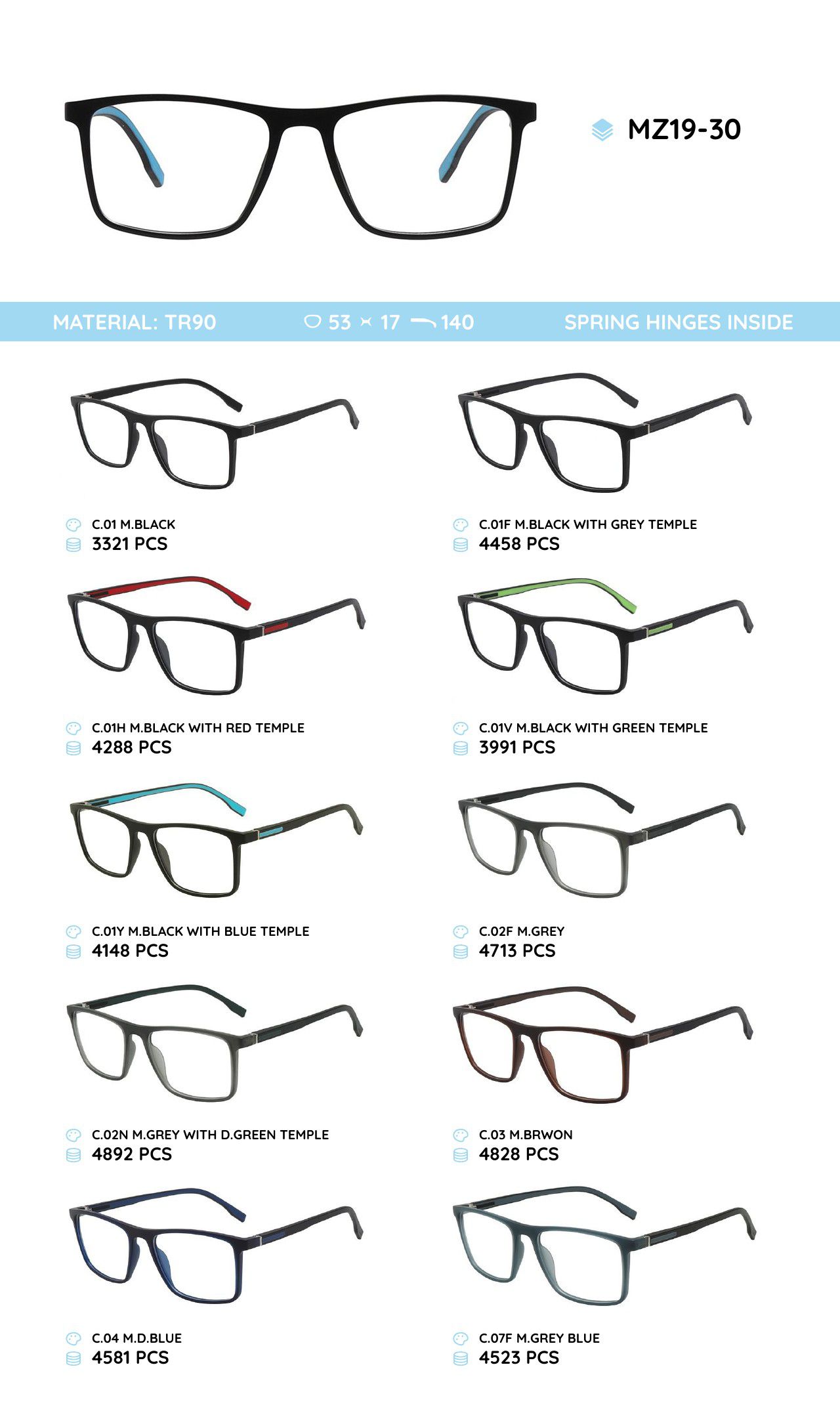Оправа пластиковая из материала TR-90, с флексом MZ19-30