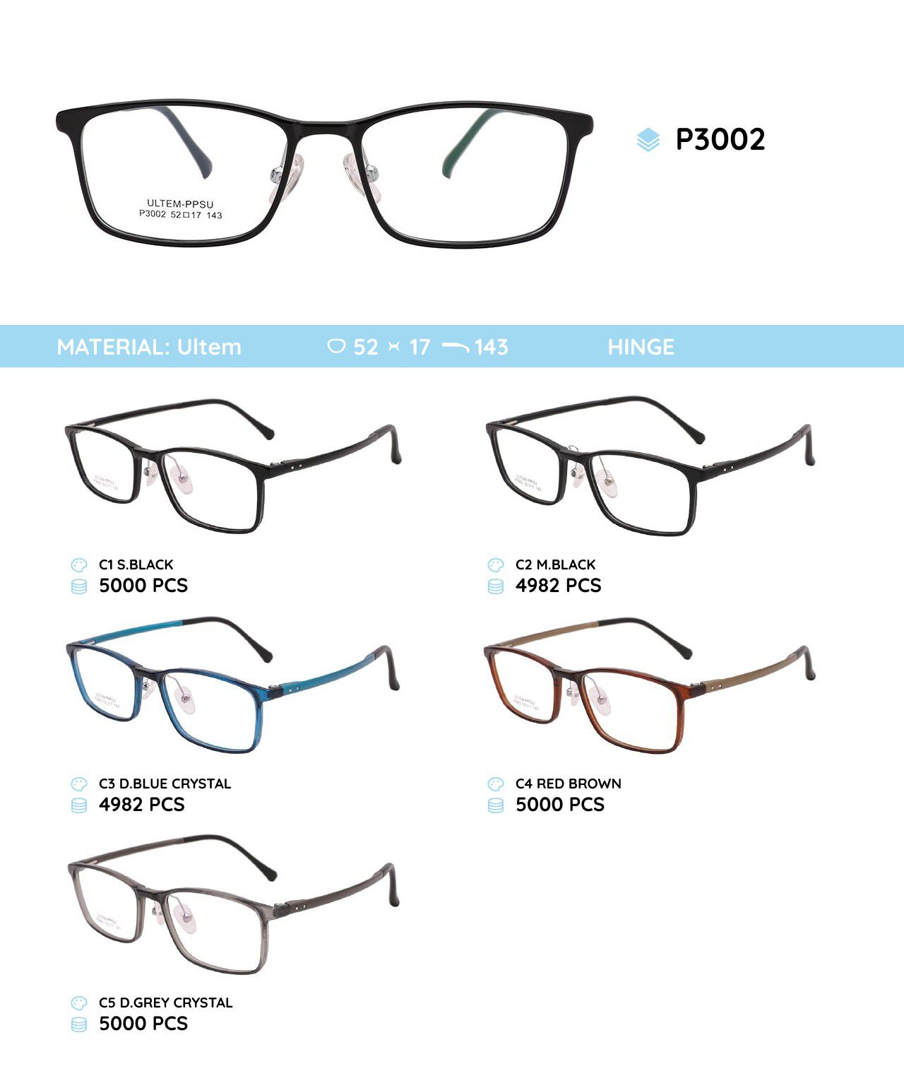 Оправа для очков пластиковая из материала Ultem P3002