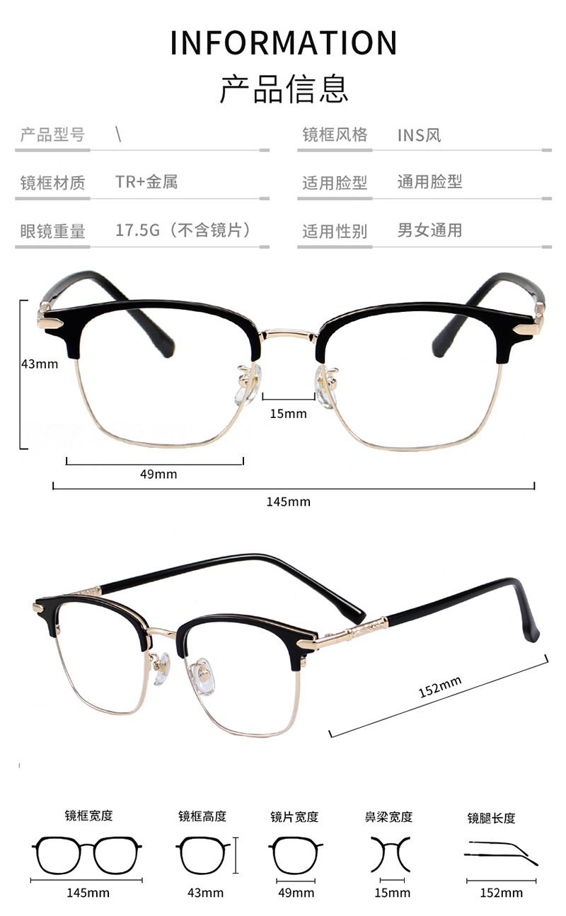 - Материал оправы: металл + пластик TR90