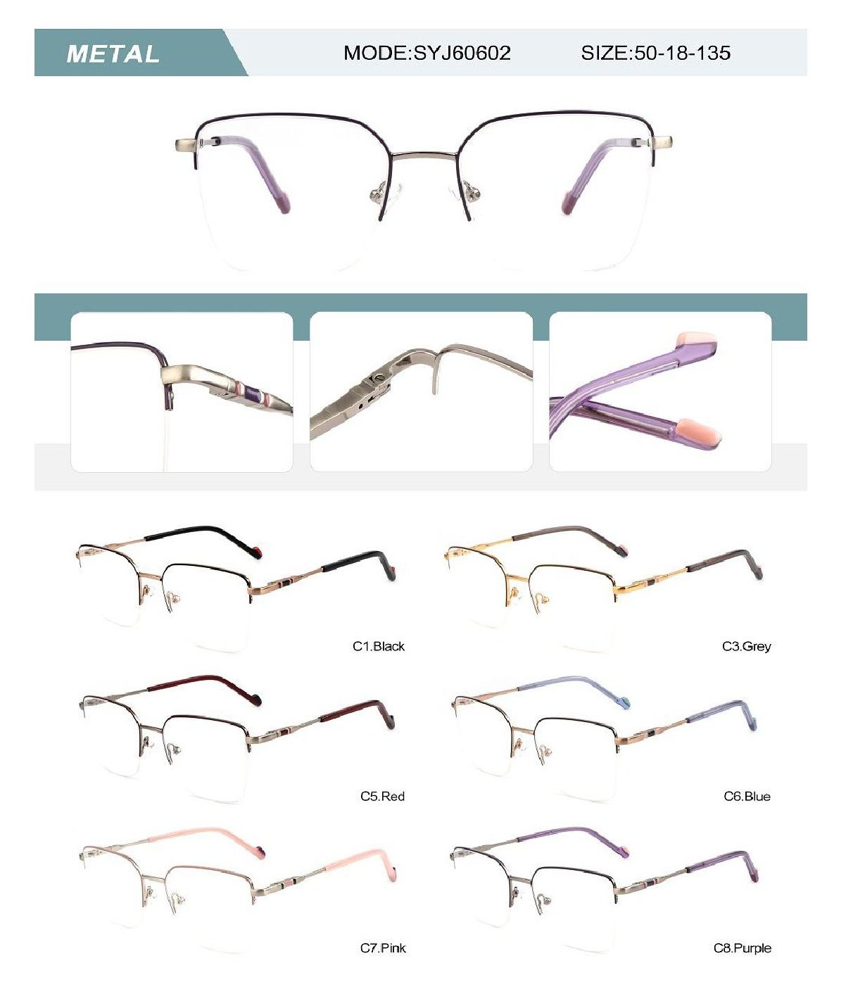 Оправа металлическая полуободковая женская с флексом SYJ60602-DA
