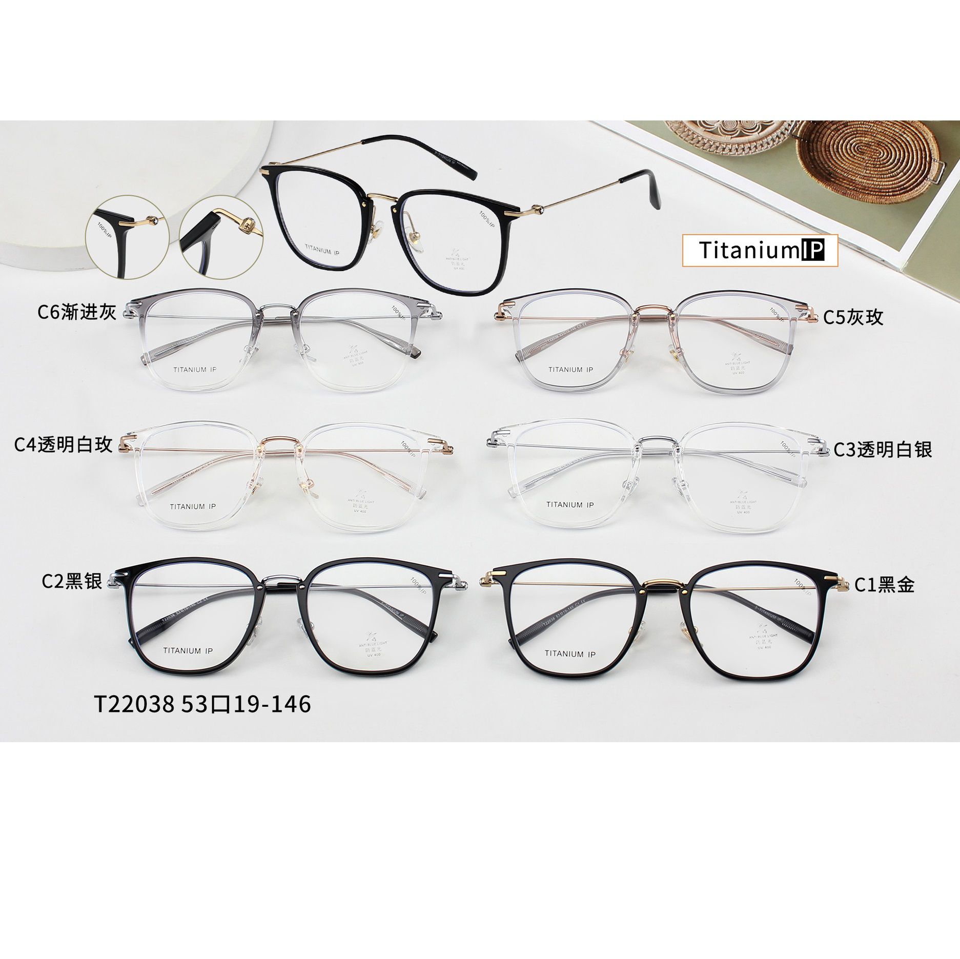 Оправа сверхлёгкая титановая + пластик с линзами с защитой от синего света TR90 MAMO T22038