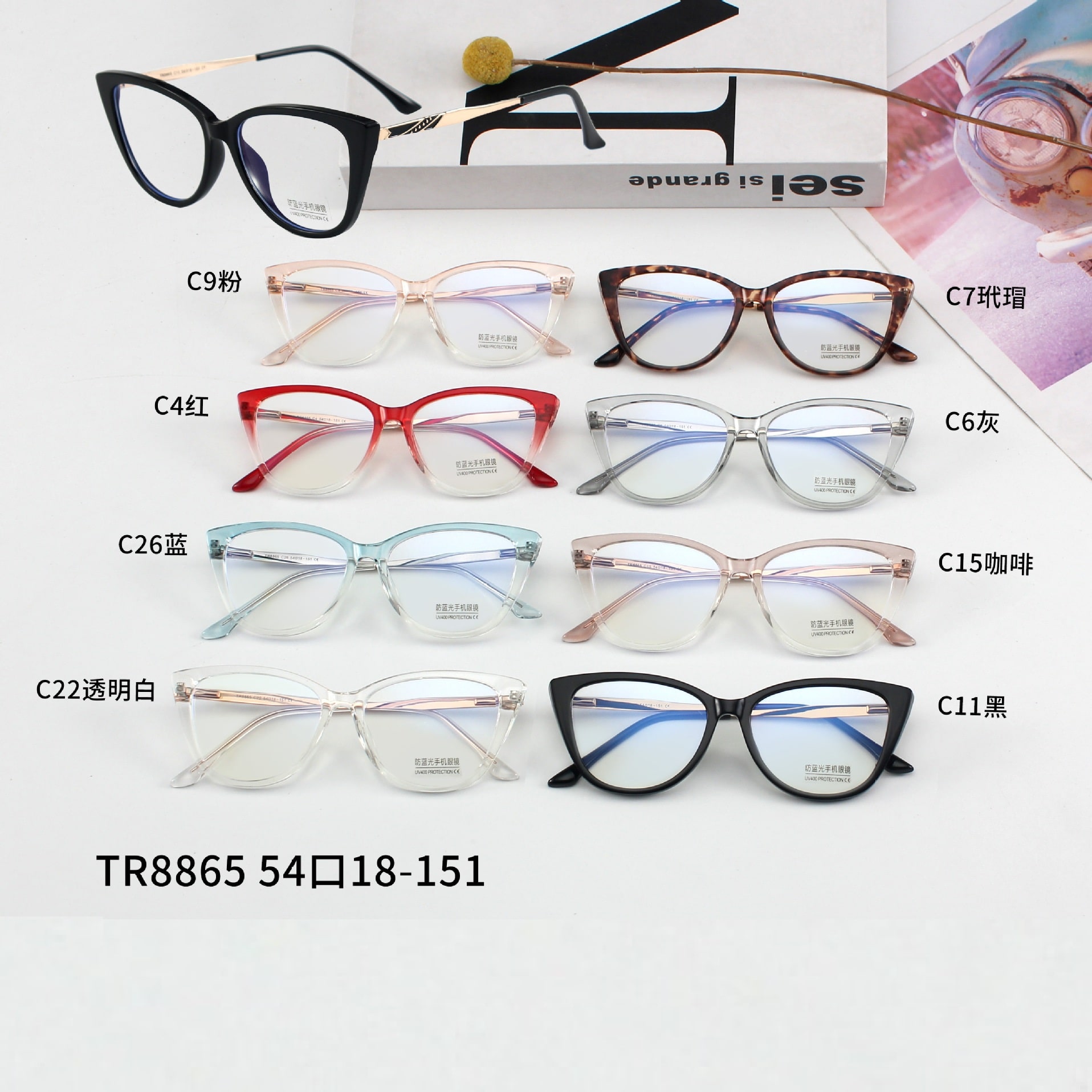 Оправа комбинированная с линзами Blue Ray Cut MAMO TR8865