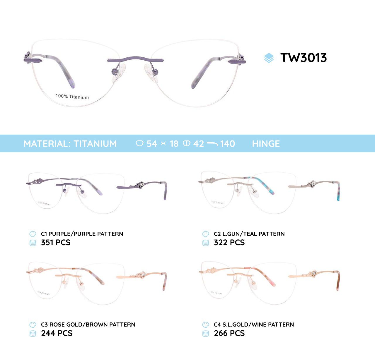 - Материал оправы: титановый сплав, ацетат целлюлозы