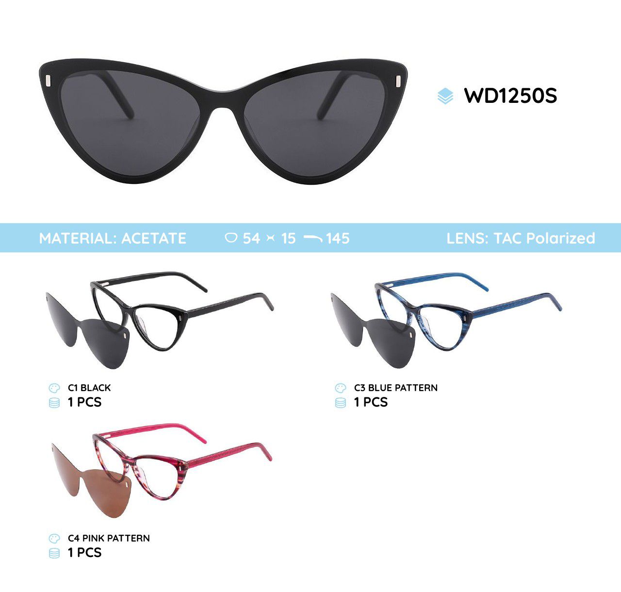 Оправа пластиковая из материала ацетат с солнцезащитной насадкой (клипон) и линзами TAC WD1250S