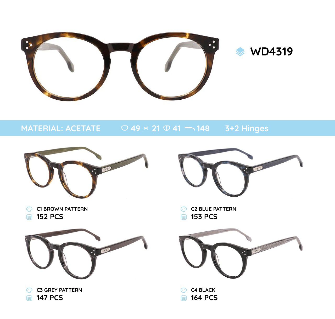 Оправа для очков пластиковая из материала ацетат WD4319