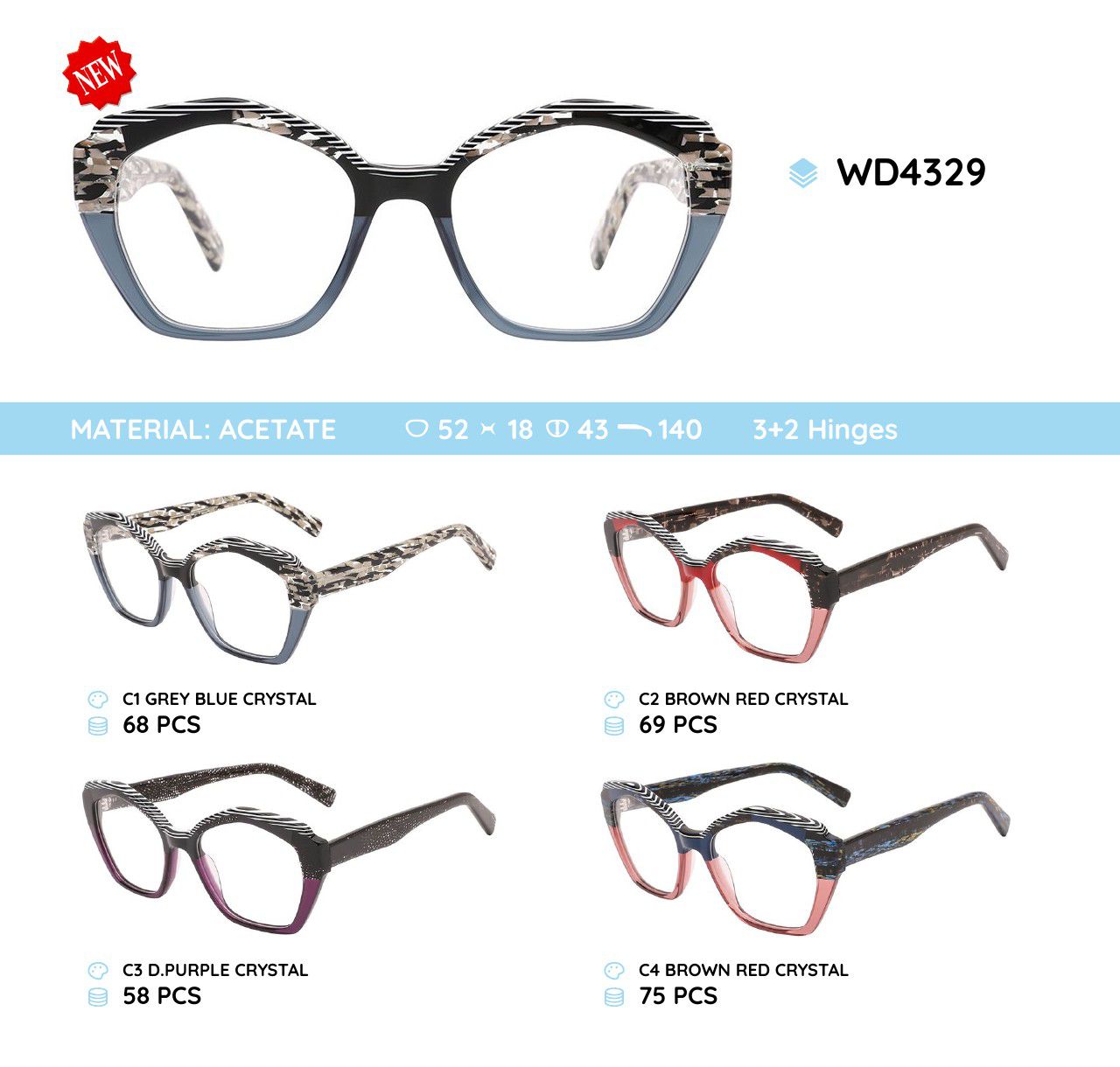 Оправа для очков пластиковая из материала ацетат WD4329