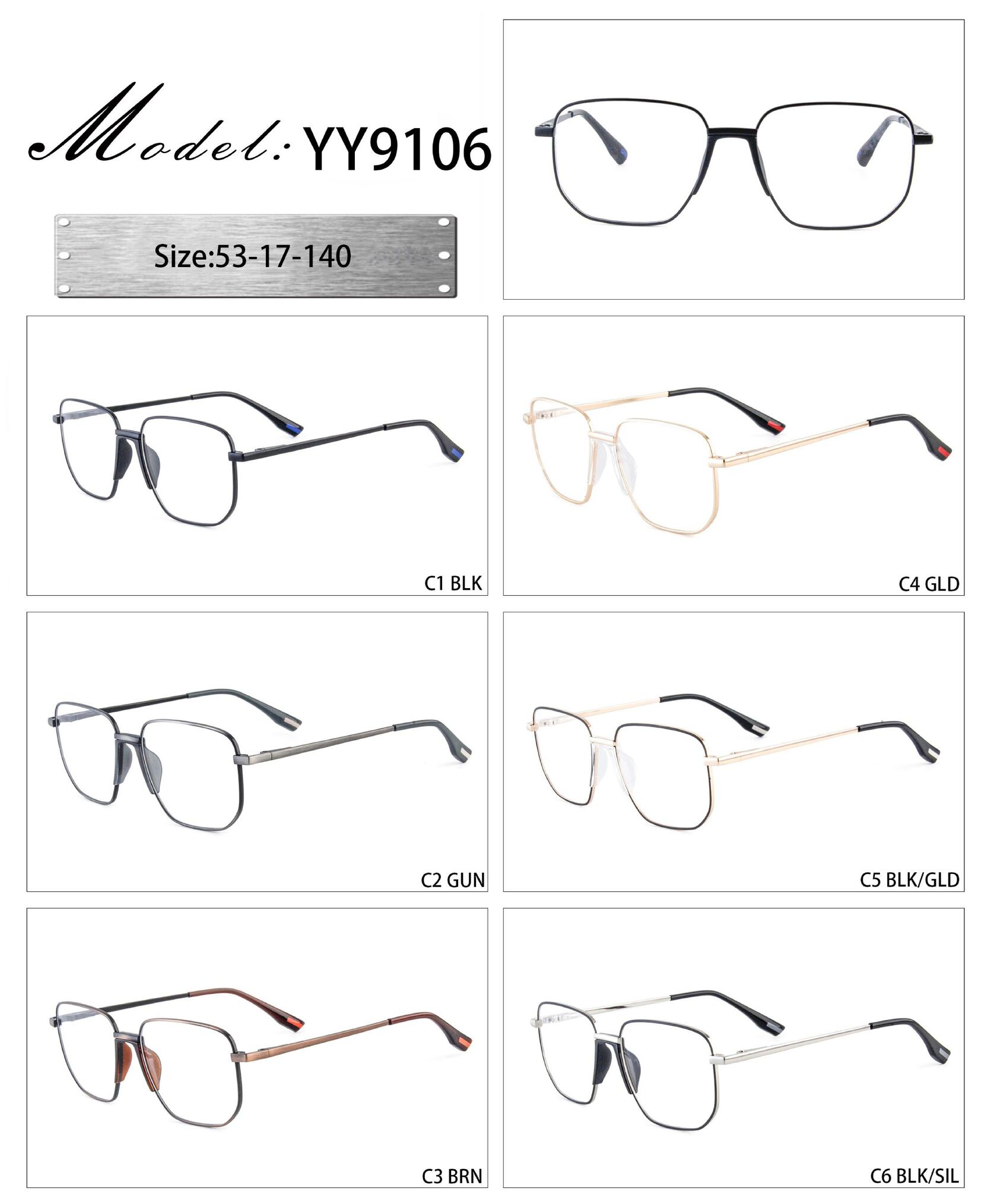 Оправа металлическая с мягким носоупором и флексом YY9106-DA