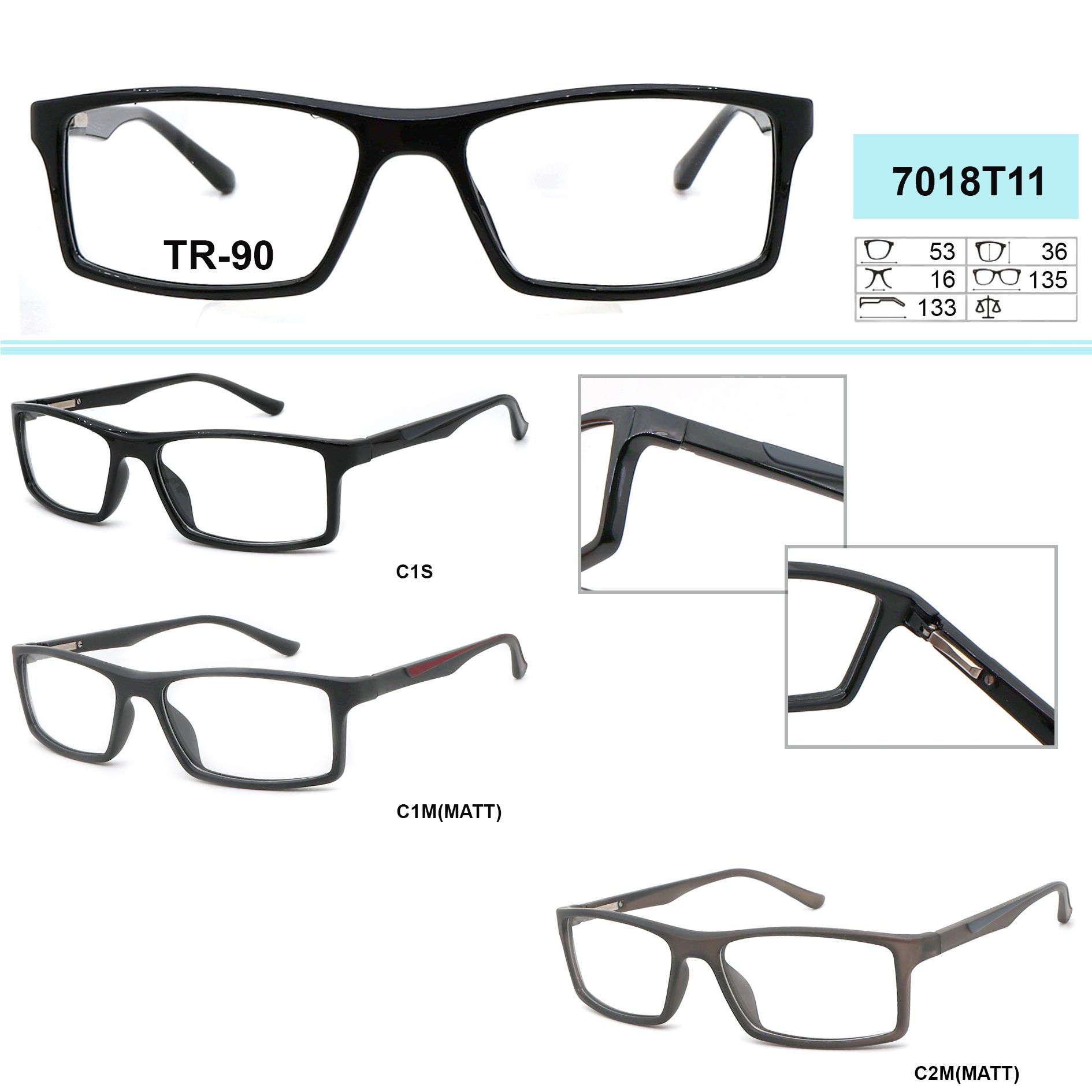 Оправы пластиковые из материала TR-90 (гриламид) GR7018T11