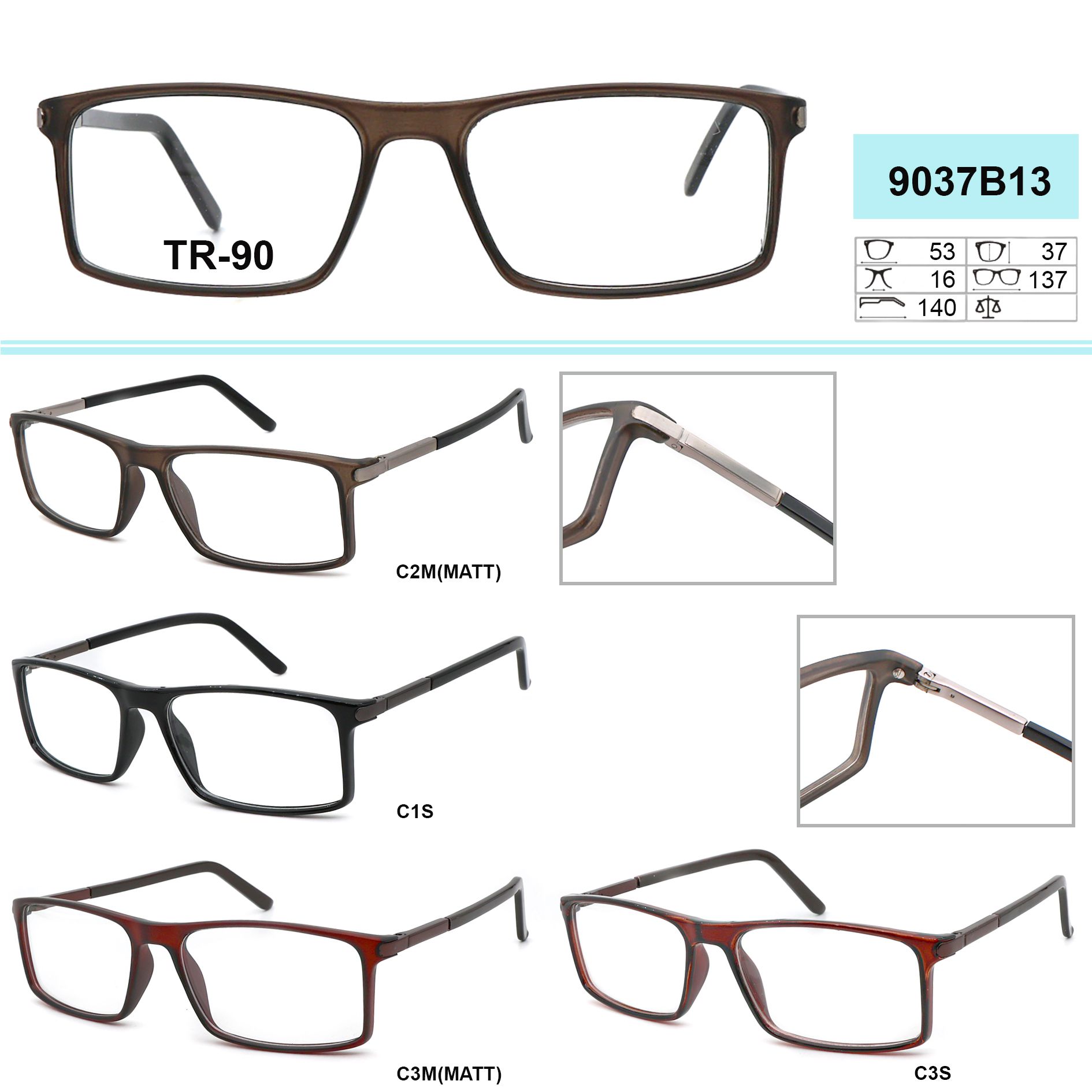 Оправы пластиковые из материала TR-90 (гриламид) GR9037B13