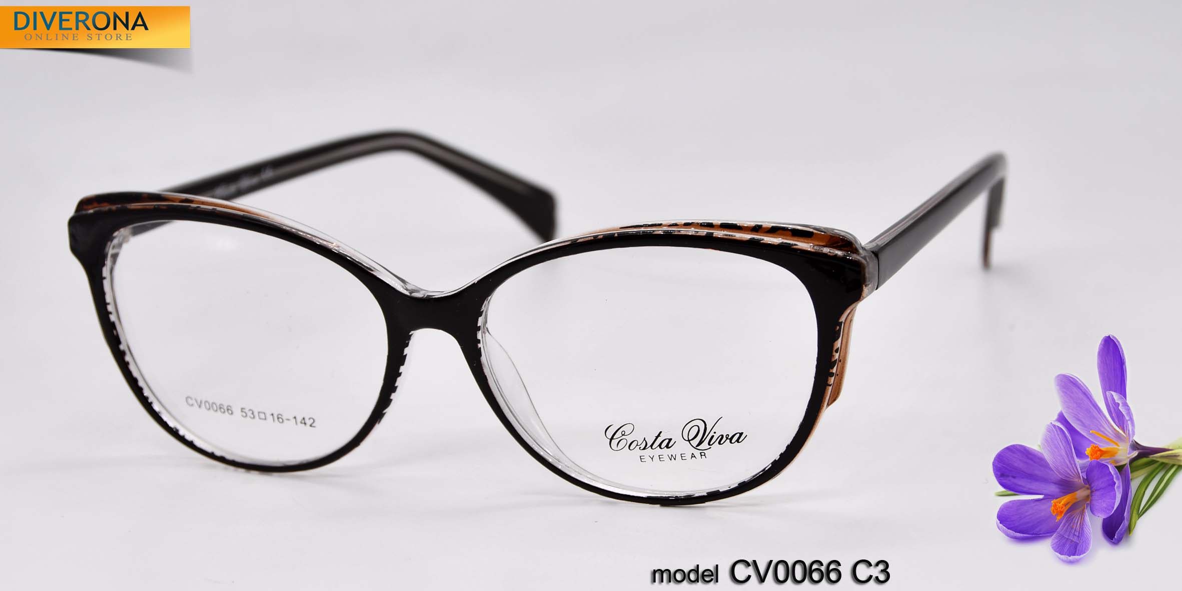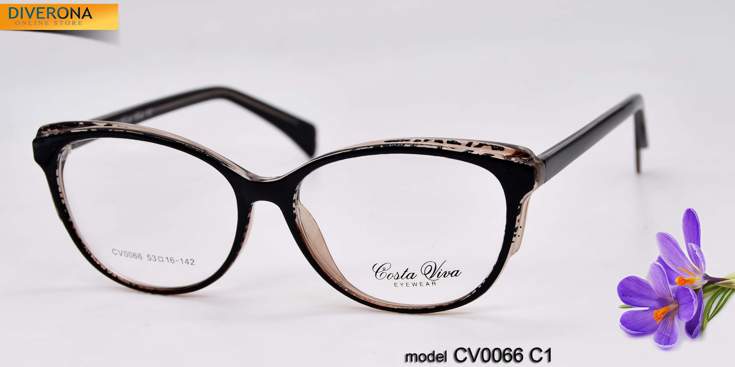 Plastic frames for glasses Costa Viva. The frames keep their shape well, at the same time are flexible. High quality. Frames have good tactile properties, resistant to damage, lightweight and hypoallergenic properties. Many models are decorated with rhinestones, have elegant temples and flex hinges. Fashionable design. This collection of frames of high quality, passes piece control. In our store goods in this category have a low price for wholesale. European Conformity.