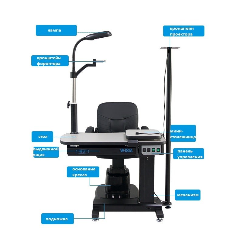 Рабочее место офтальмолога, комбинированный стол + кресло W-181A, столешница 900*500 мм