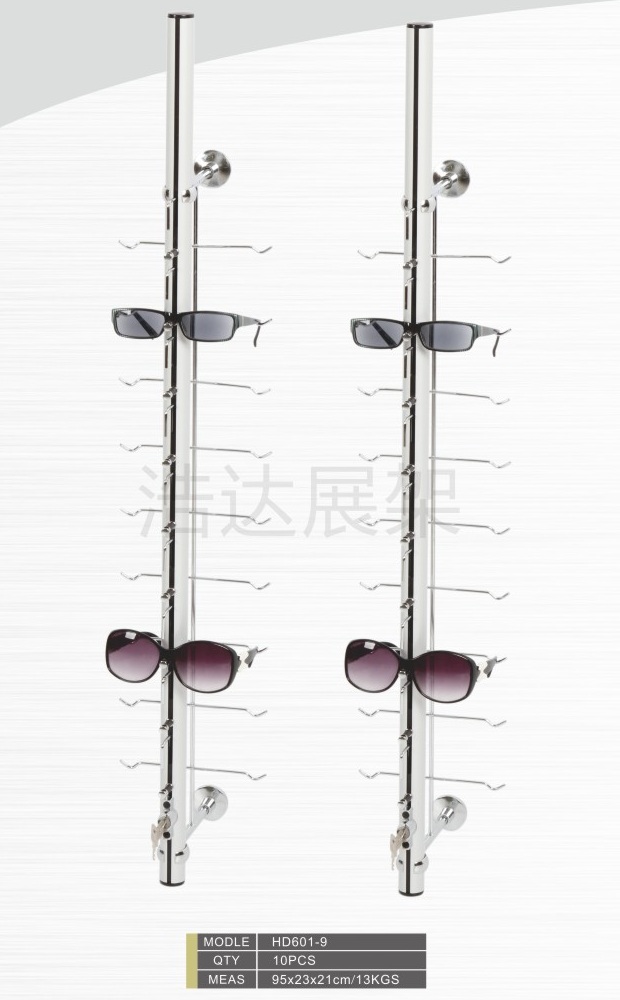 Stand wall-mount glasses rack with 9-20 slots and locks HD601 无锁铝条眼镜展示架
