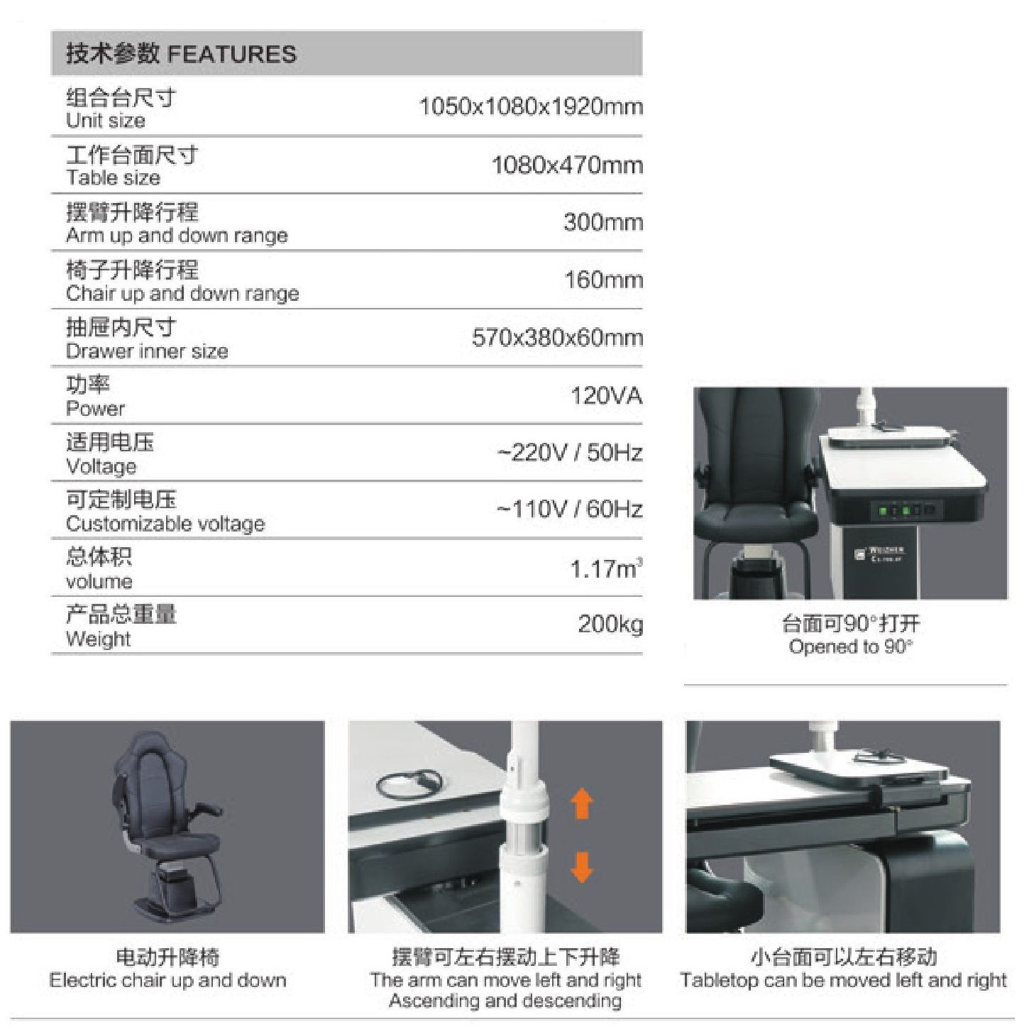 Рабочее место офтальмолога, комбинированный стол + кресло CS-700AT, столешница 950*460 мм