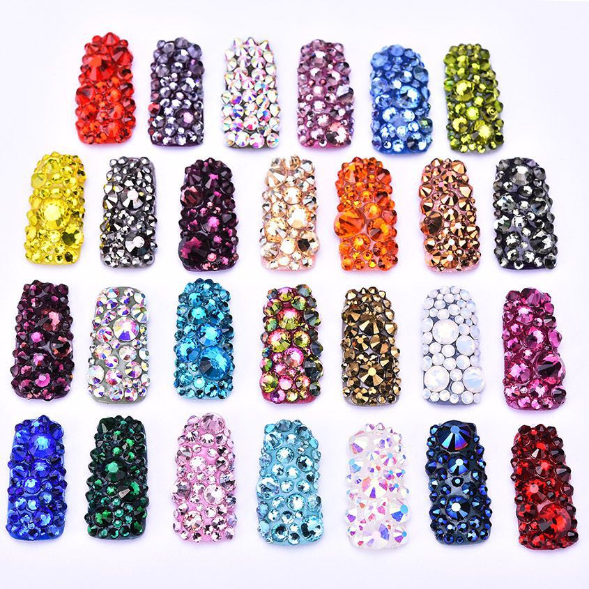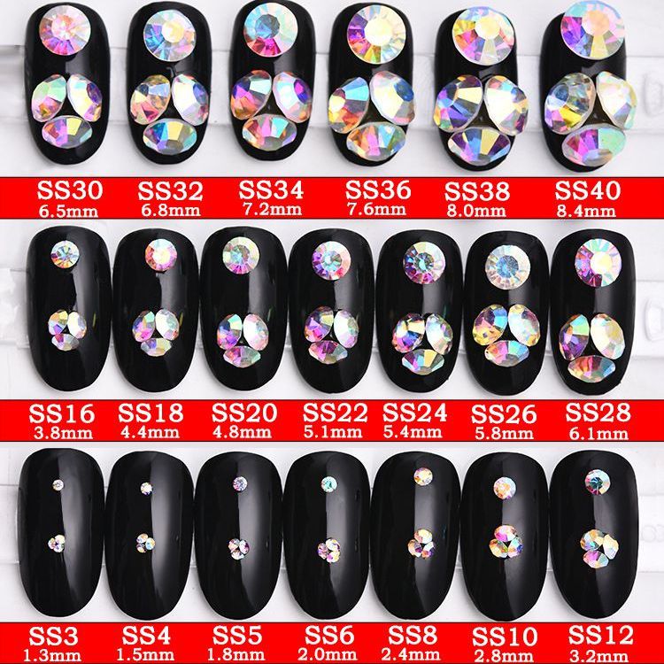 Набор страз с плоским дном для украшения оправ и очков, 32 цвета, размер 2-6.5 мм, ~720 шт., PD0002 (цена за упаковку, мин. заказ - 3 шт.)