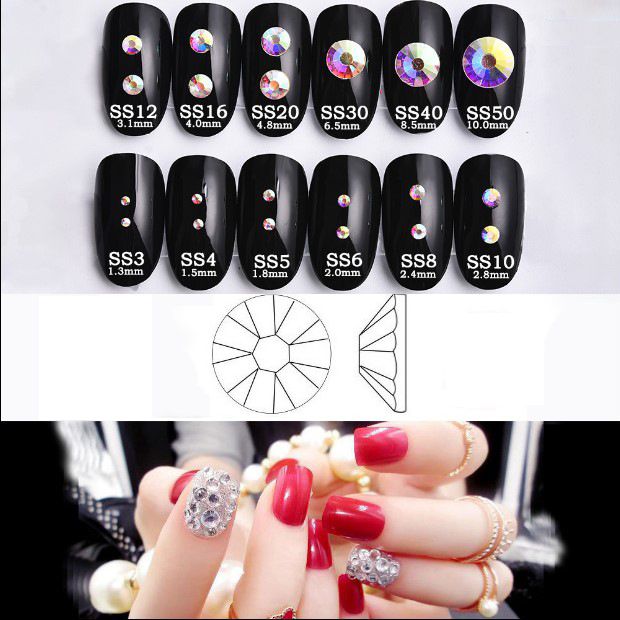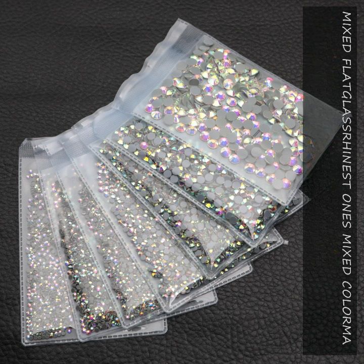 Набор страз с плоским дном для ремонта и украшения оправ и очков PD0036, цвет: белый и AB, 1.3-6.5 мм (цена за упаковку, мин. заказ- 3)