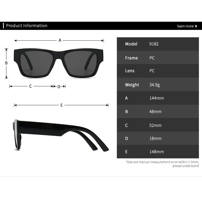 - Size: lens width - 52 mm, bridge - 18 mm, temple length - 148 mm