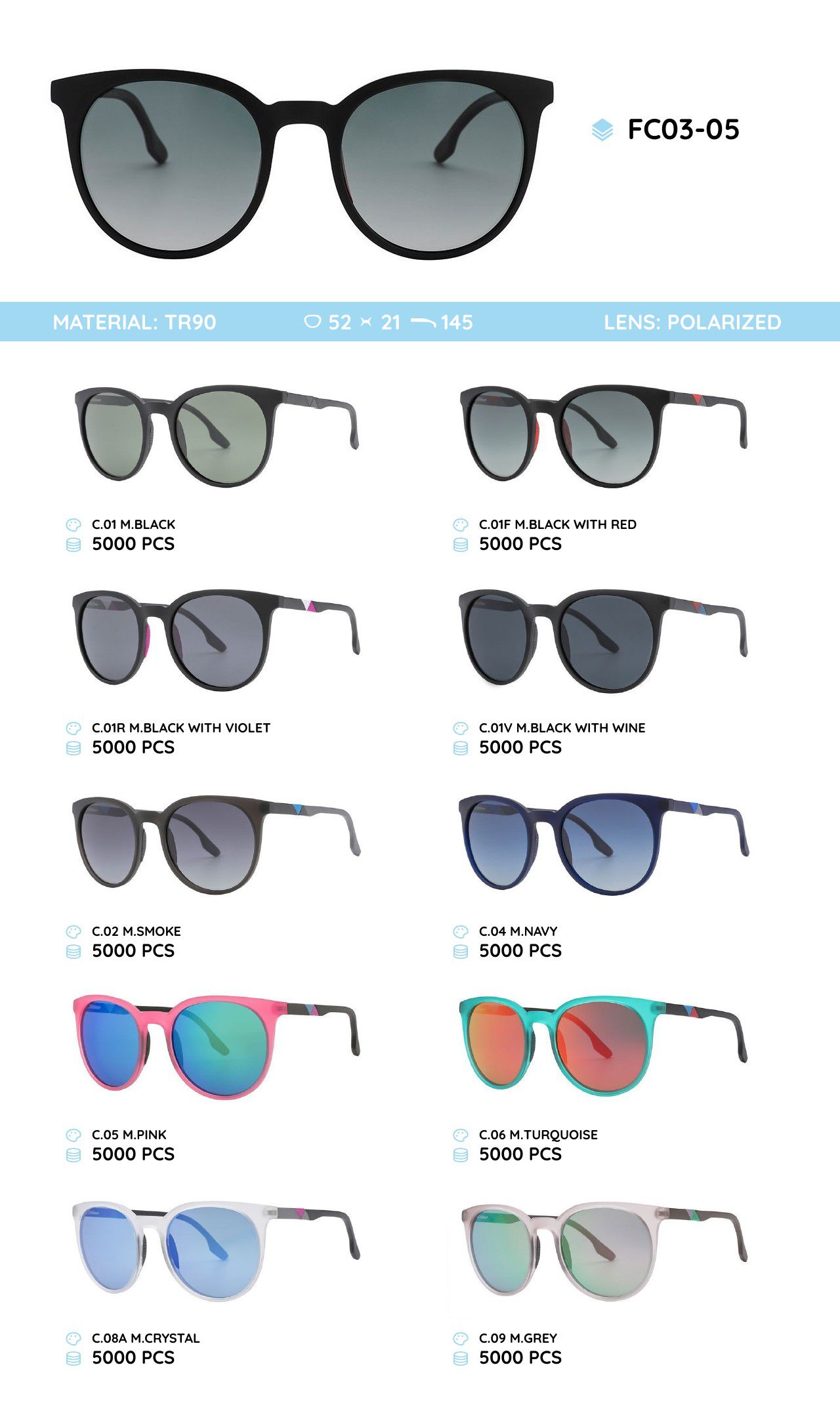 Plastic TR90 frame polarized sunglasses FC03-05