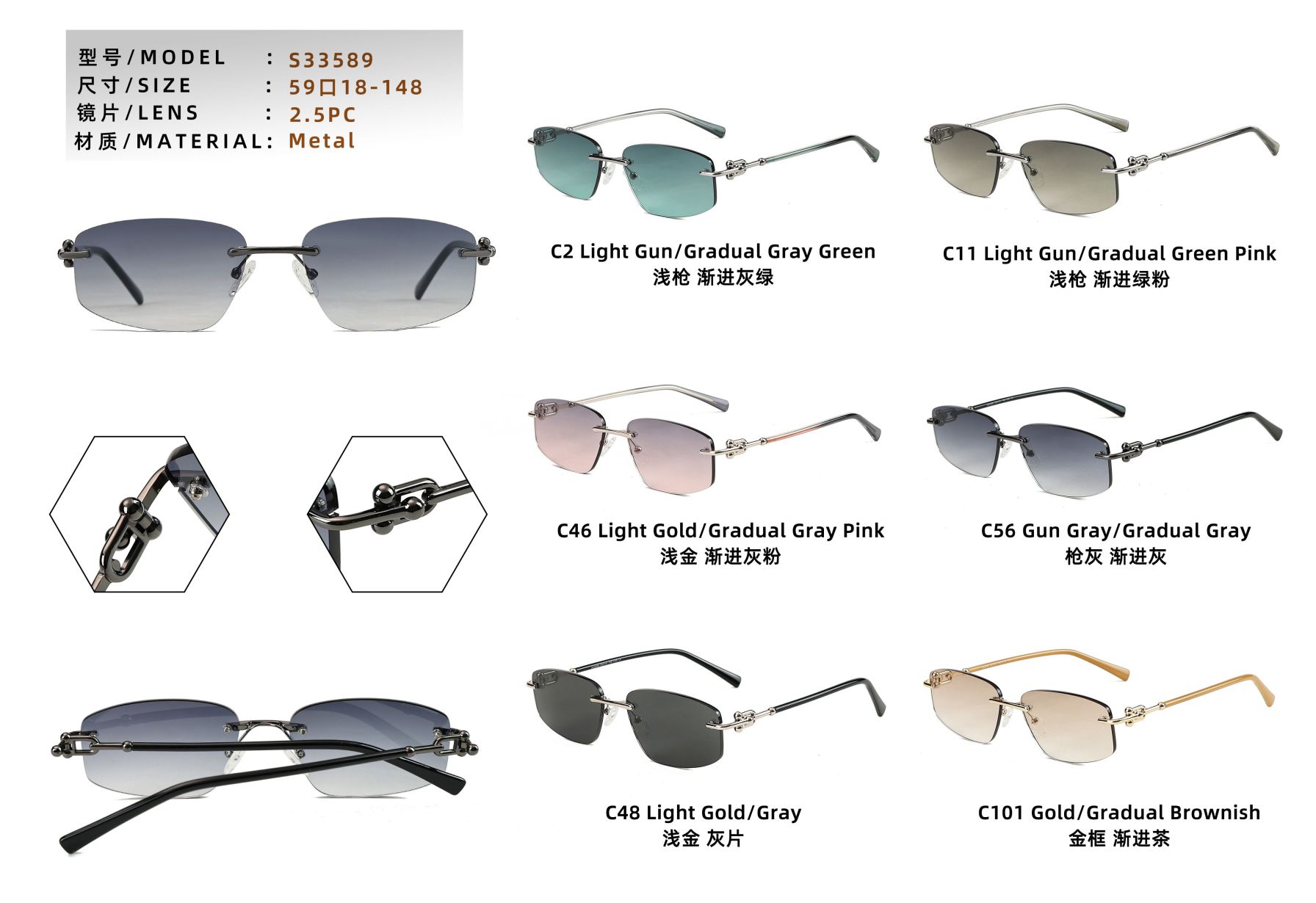 Rimless polarized metal sunglasses for men Leke S33589