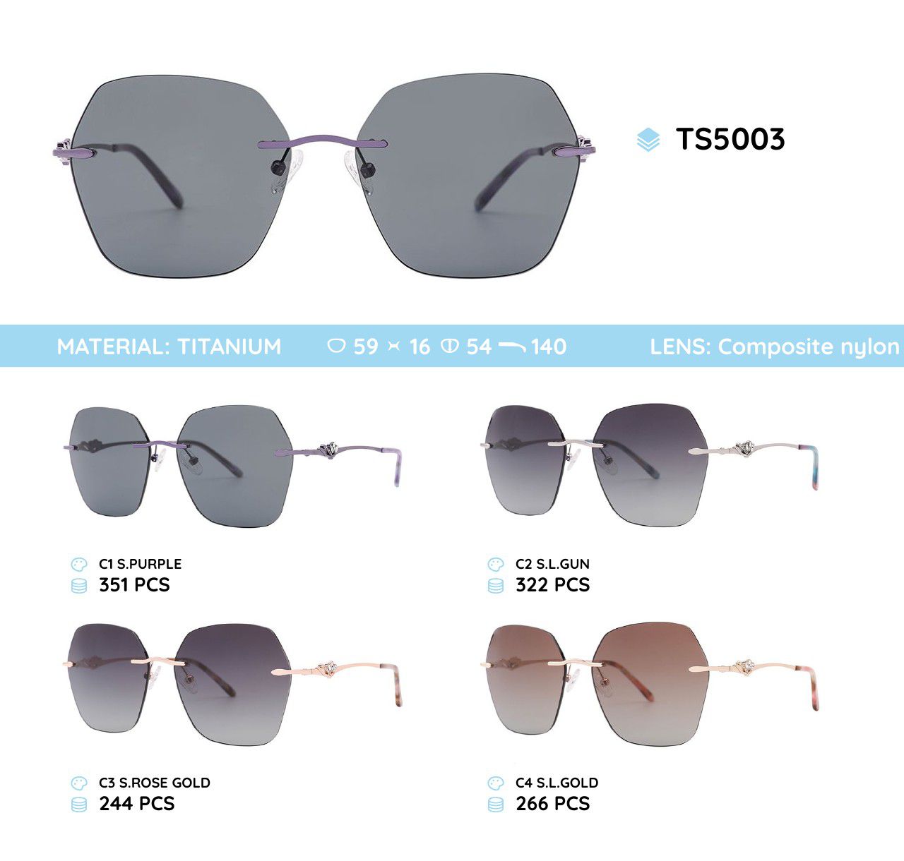 Titanium rimless frame polarized sunglasses TS5003