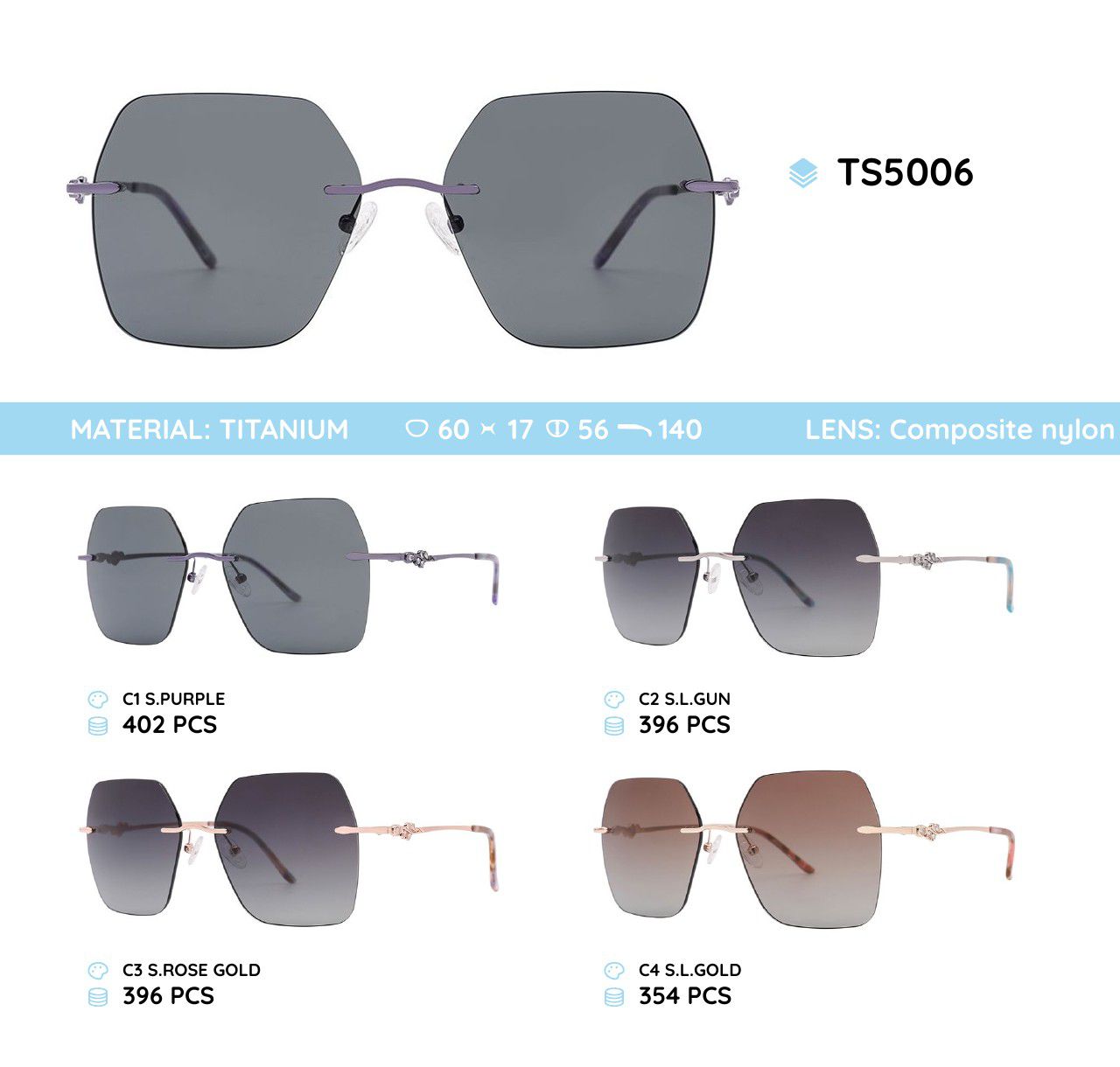 Titanium rimless frame polarized sunglasses TS5006