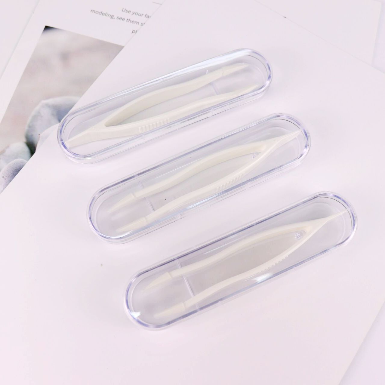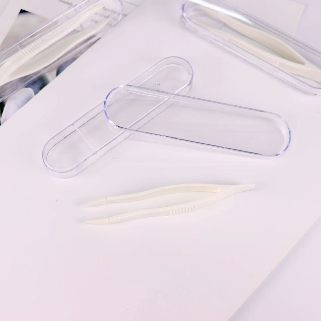 Plastic tweezers with individual pencil-box packaging Extra-large-tweezers-box Tweezers length 11 cm