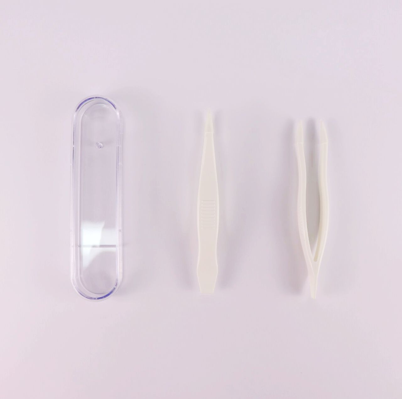 - Set: soft-tipped tweezers, soft-tipped stick, snap box