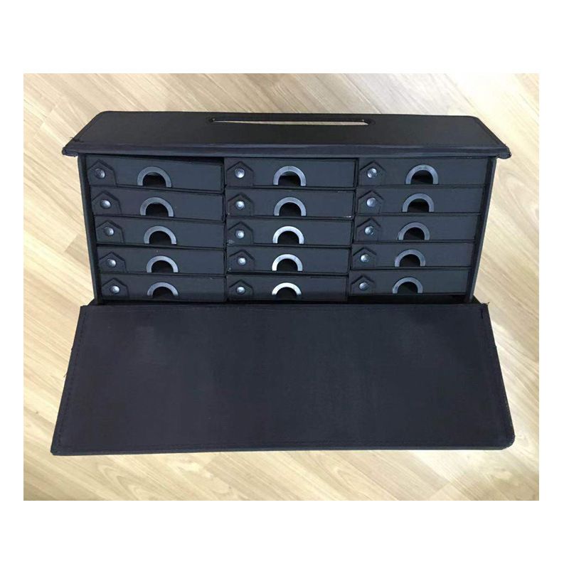 - Вместимость: 120 мест (15 ящиков по 8 ячеек, для оправ, очков и солнцезащитных очков)