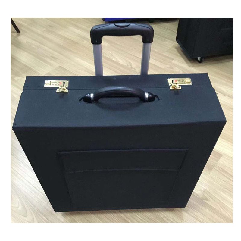 Чемодан на колёсиках, с выдвижной ручкой. Удобен в транспортировке. Используется в салонах оптики, и выездными курьерами для перевозки и демонстрации очков и оправ. Подходит для деловых поездок, выставок и т.п.