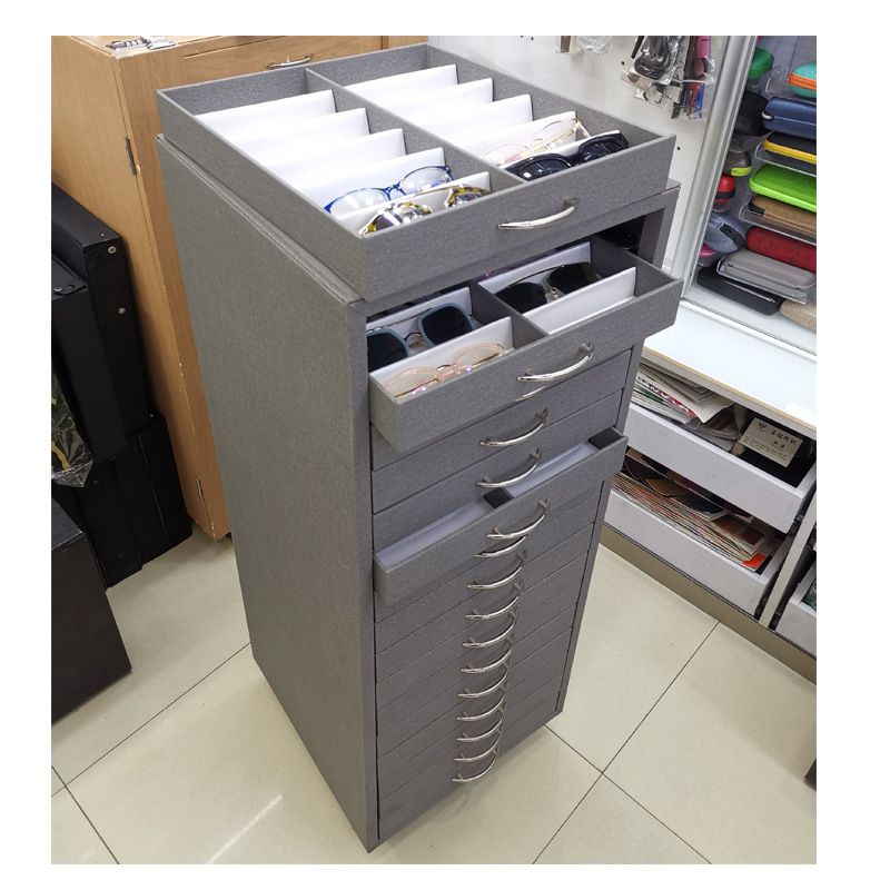 - Вместимость: 192 места (16 ящиков по 12 ячеек, для оправ) / 156 мест (13 ящиков по 12 ячеек, для солнцезащитных очков)