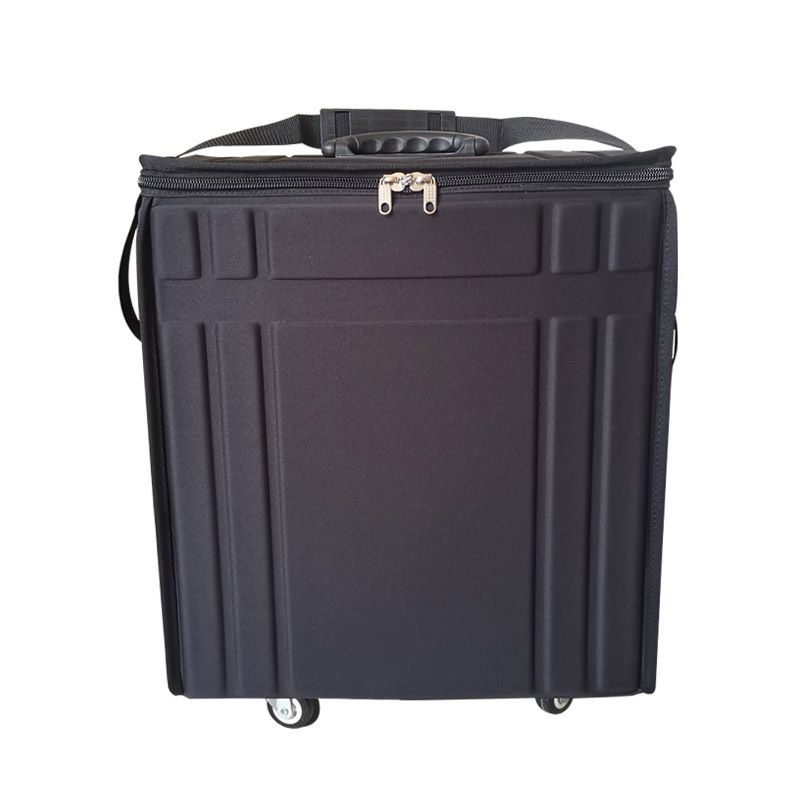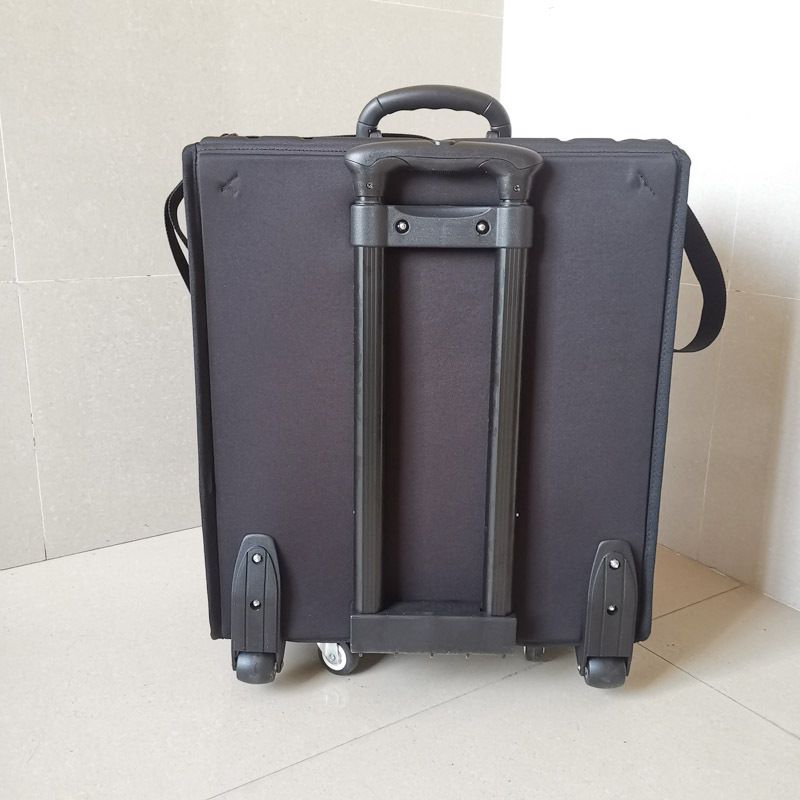 Чемодан на колёсиках, с выдвижной ручкой. Удобен в транспортировке. Используется в салонах оптики, и выездными курьерами для перевозки и демонстрации очков и оправ. Подходит для деловых поездок, выставок и т.п.