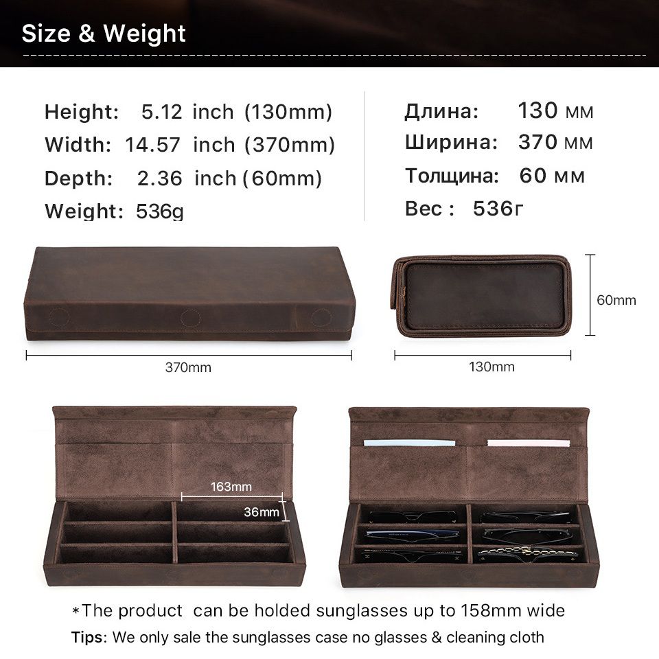 Sunglasses and eyeglasses genuine leather case with 6 slots CF4012