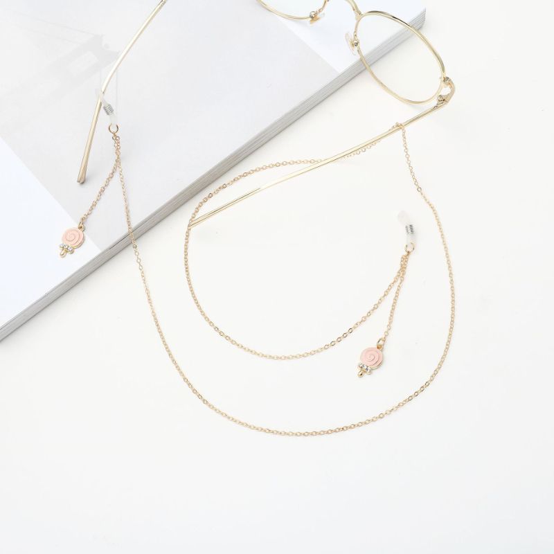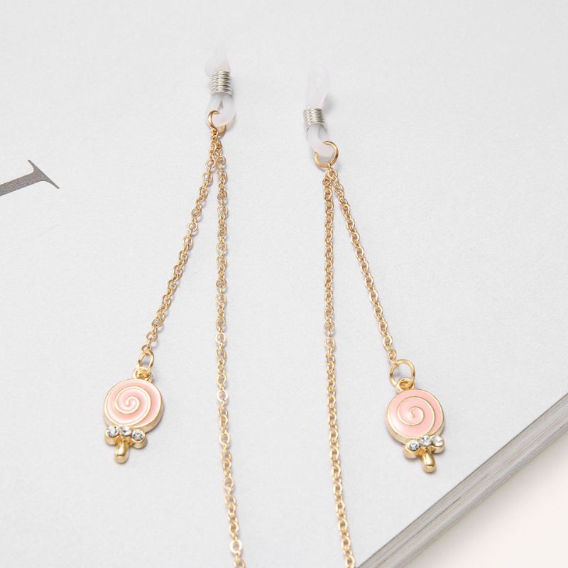 Металлическая нескользящая цепочка золотого цвета, с подвеской в виде конфет со стразами, для очков и масок GA024