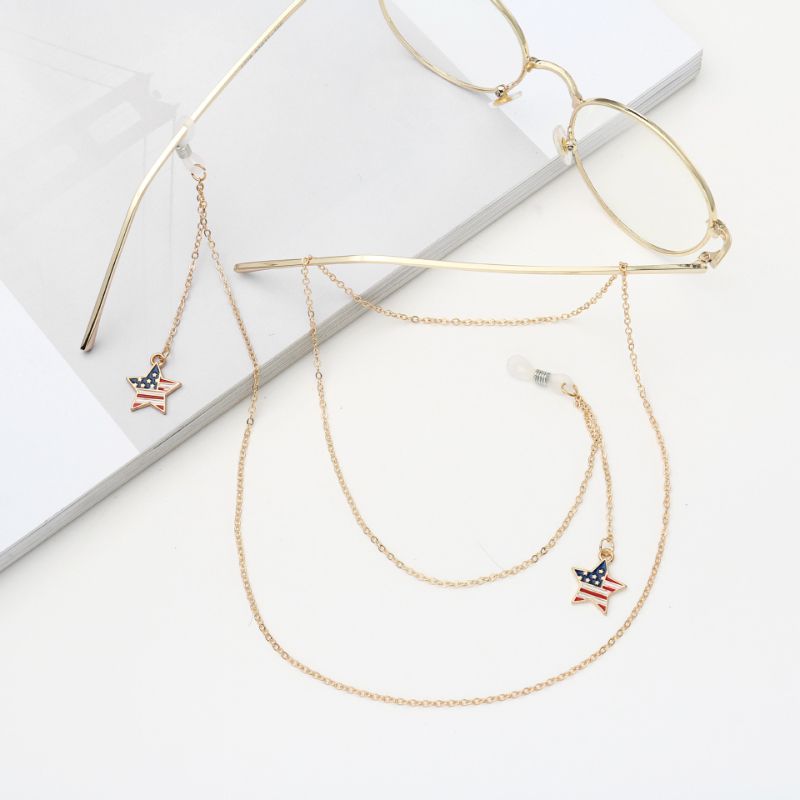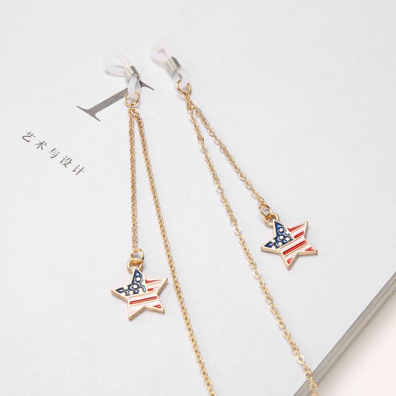 Металлическая нескользящая цепочка золотого цвета, с подвеской в виде пятизвездочного флага, для очков и масок GA027