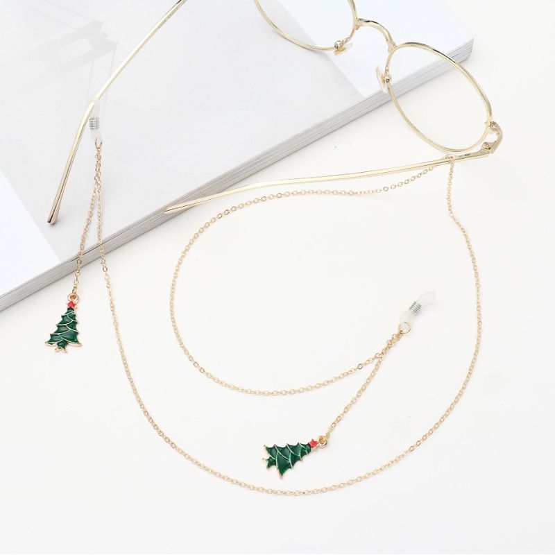 Металлическая нескользящая цепочка золотого цвета, с подвеской в виде рождественской елки, для очков и масок GA035