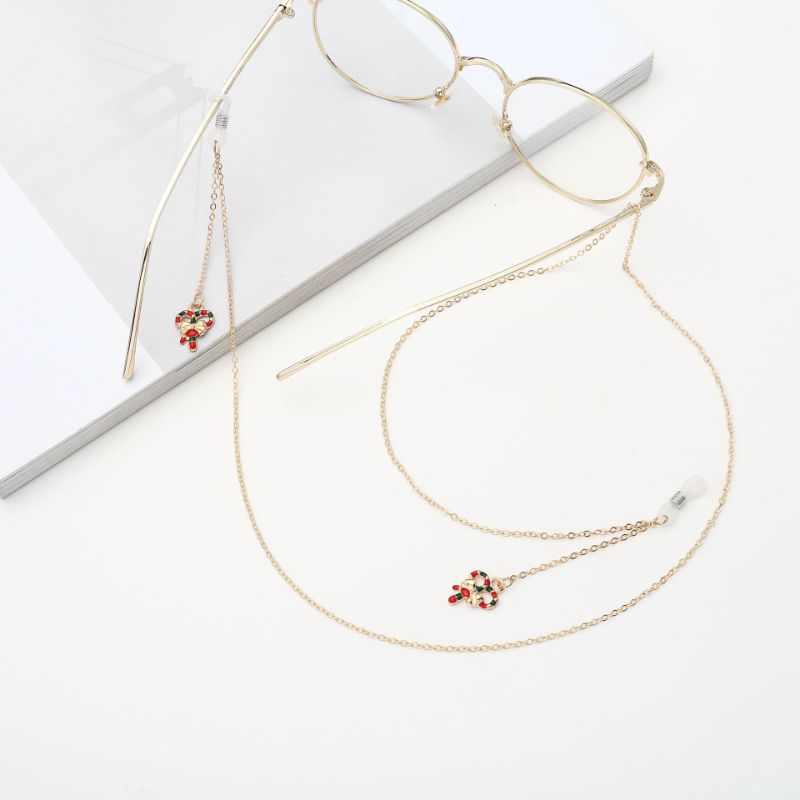 Металлическая нескользящая цепочка золотого цвета, с рождественским бантом, для очков и масок GA036