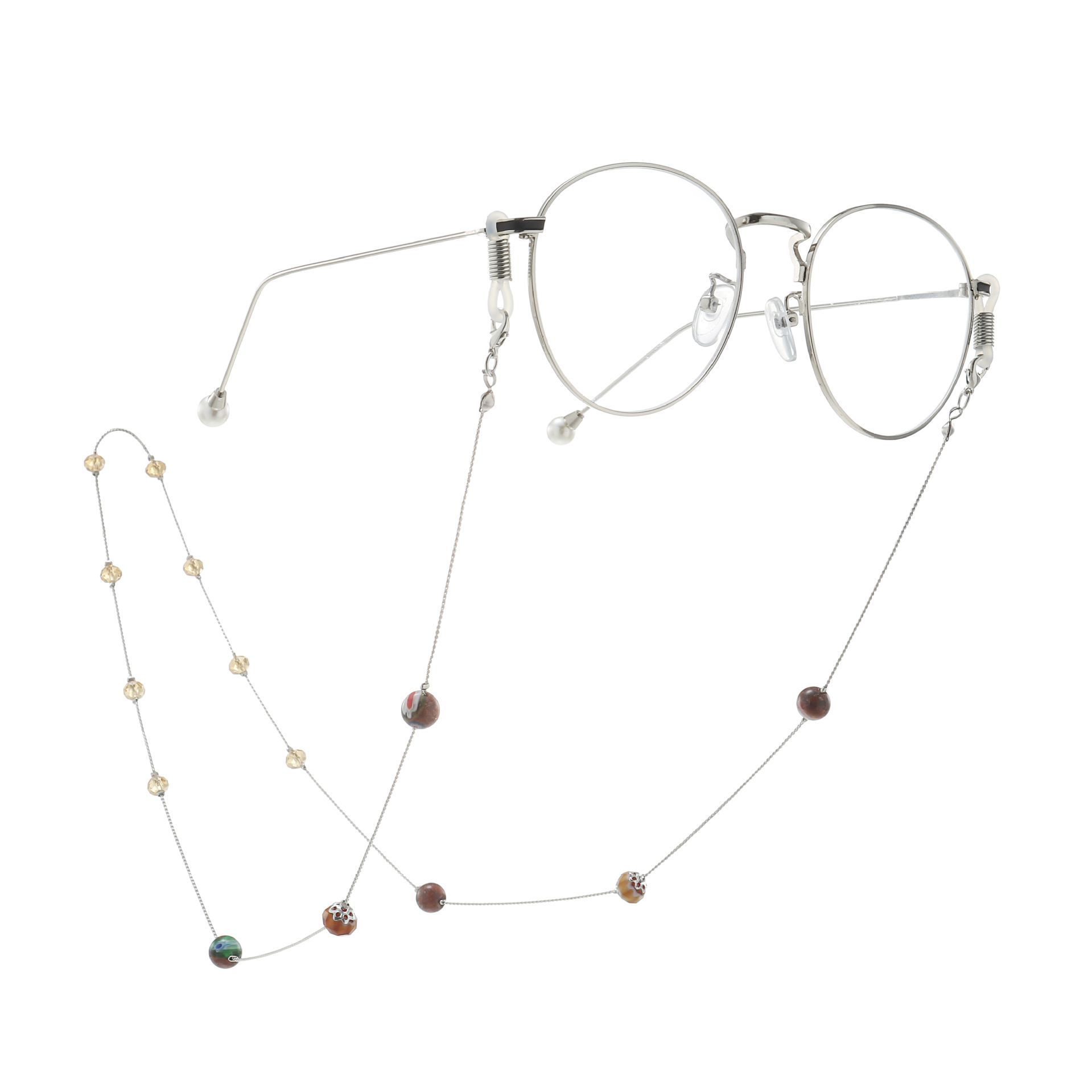 Металлическая нескользящая цепочка, серебряного цвета, с черно-белыми бусинами, для очков и масок GA055