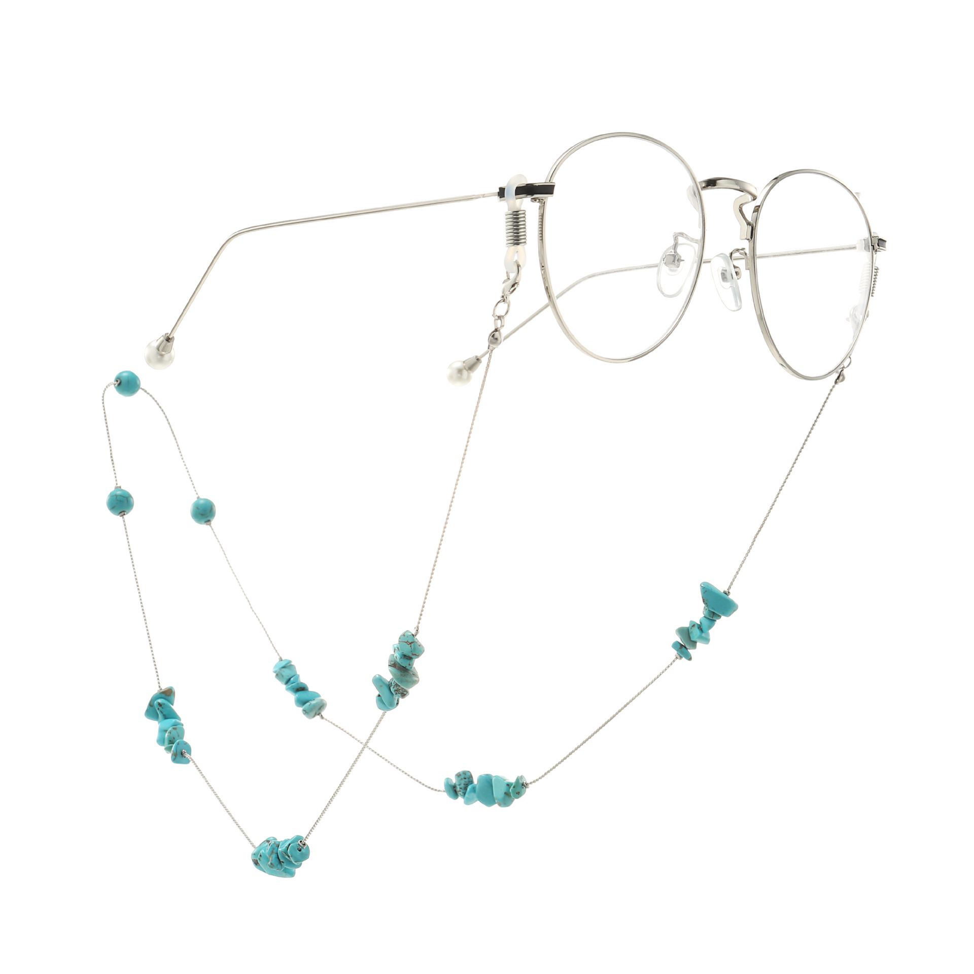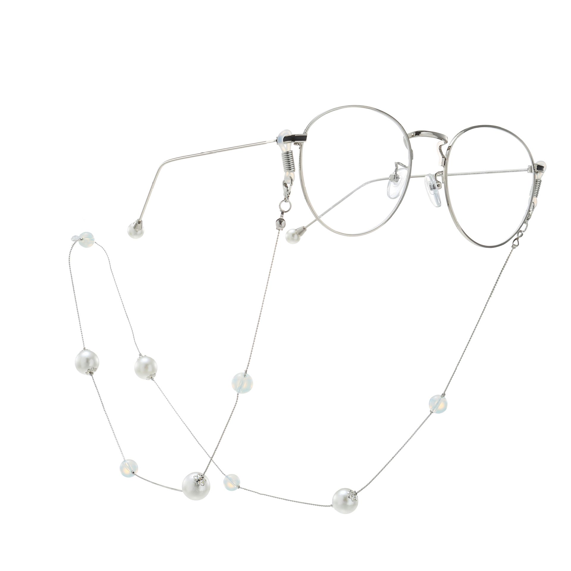 Металлическая нескользящая цепочка серебряного цвета, с бусинами, для очков и масок GA063