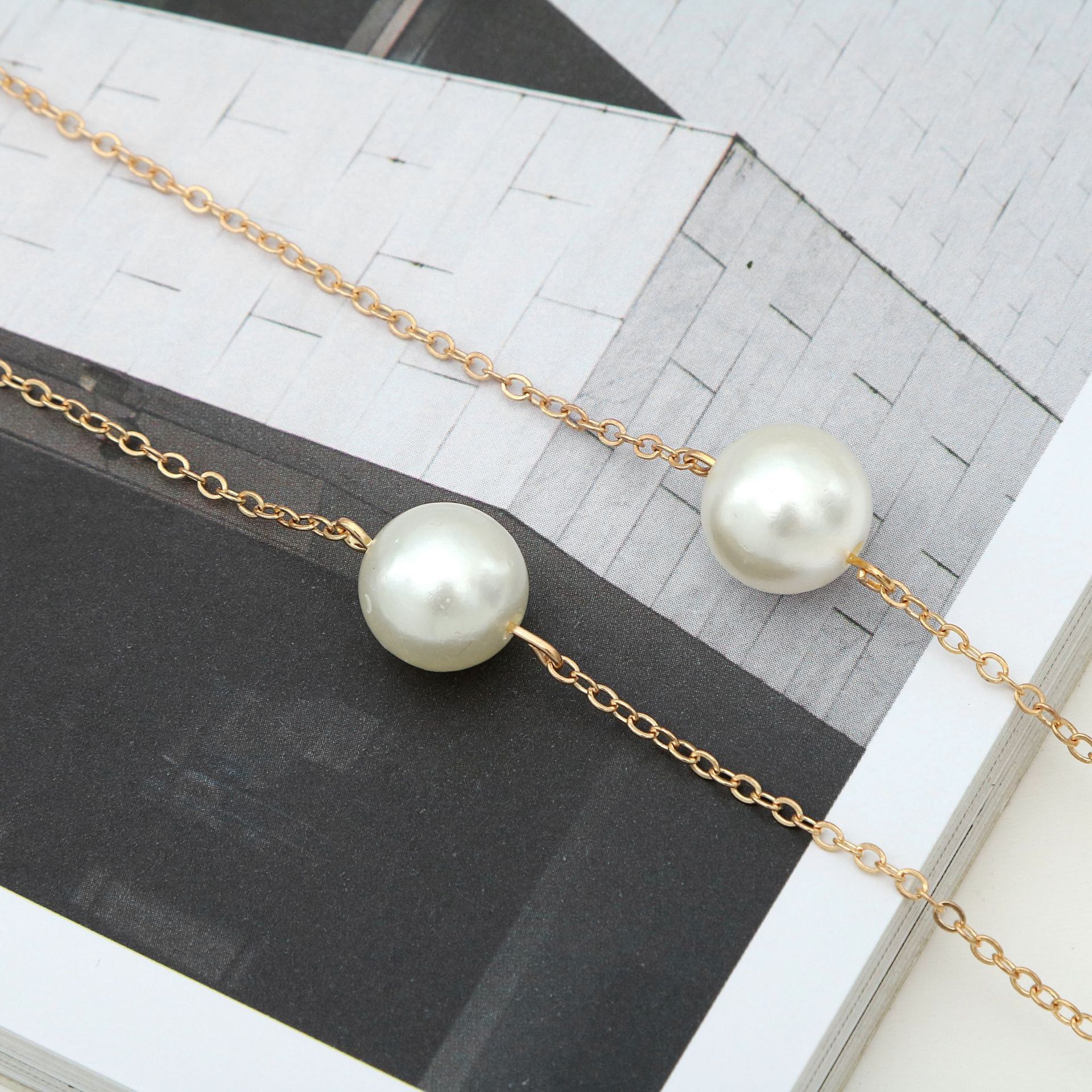 Металлическая нескользящая цепочка, с жемчужными бусинами, для очков и масок GA066