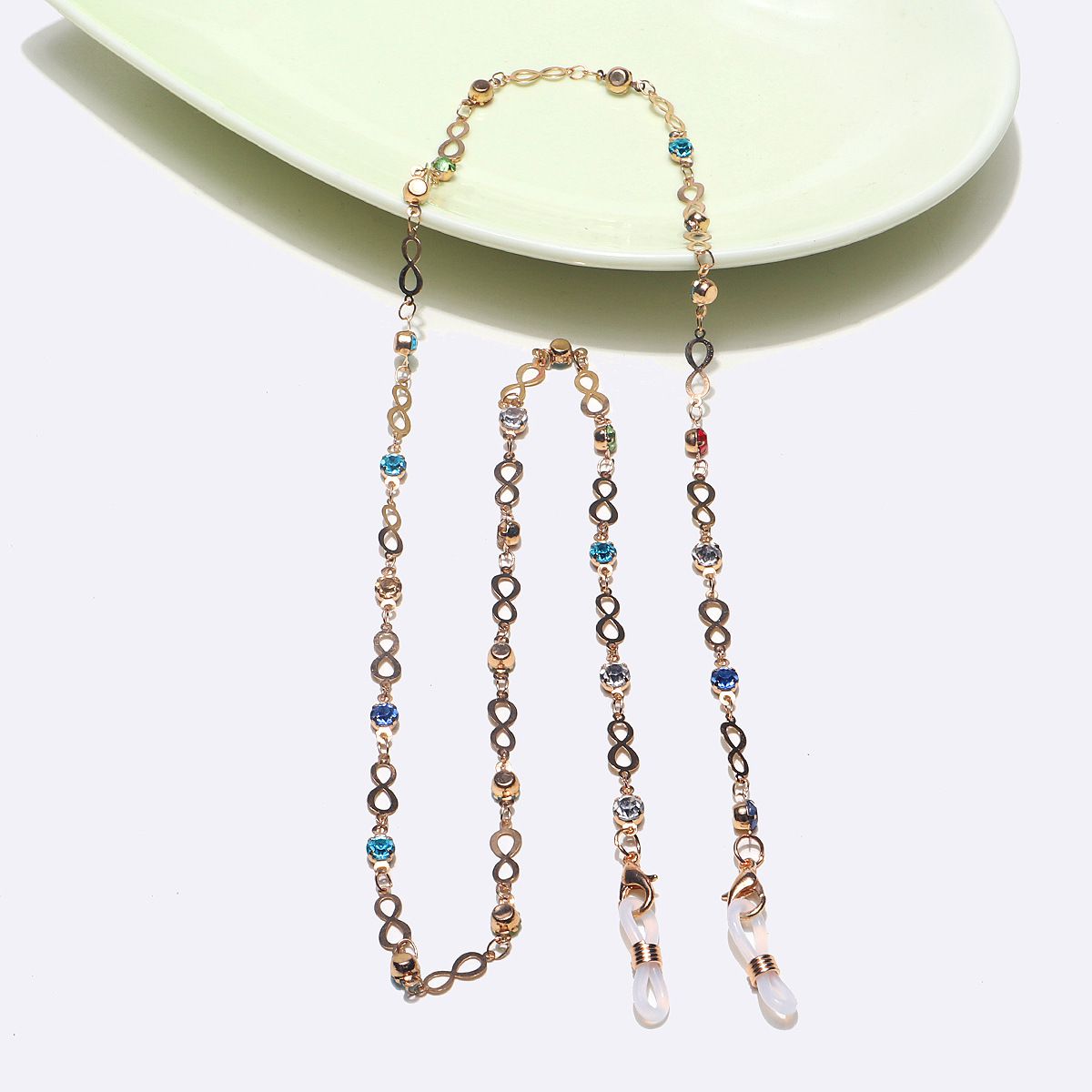 Металлическая нескользящая цепочка, с цветными стразами, для очков и масок GA083