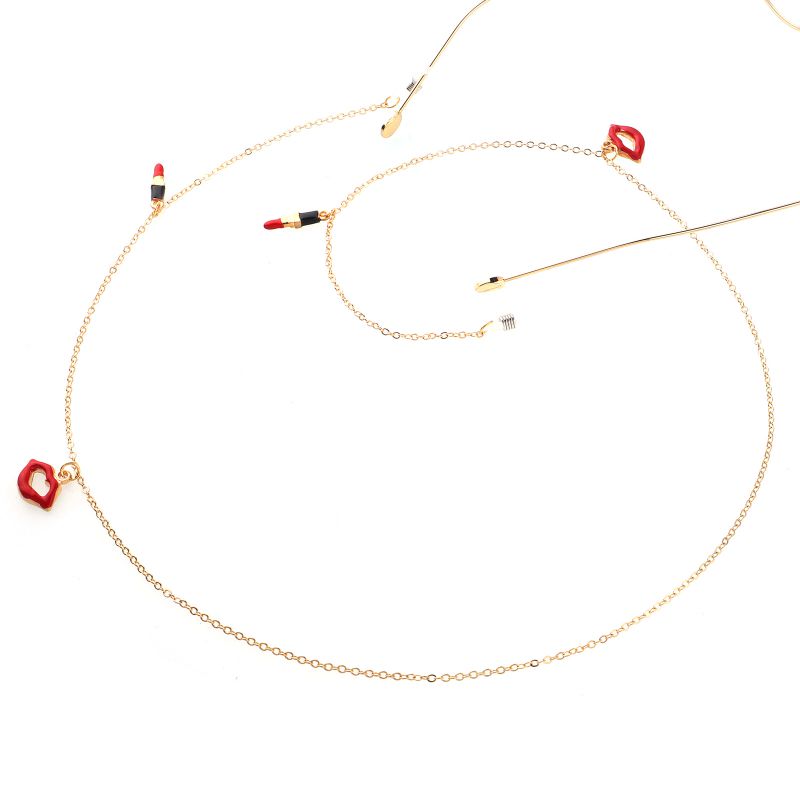 Металлическая нескользящая цепочка золотого цвета, с помадой для губ, для очков и масок GL004