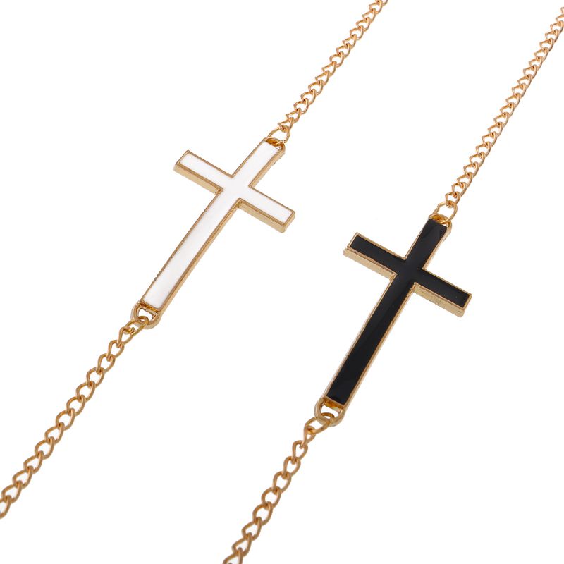 Металлическая нескользящая цепочка золотого цвета, с черным и белым крестом, для очков и масок GL040