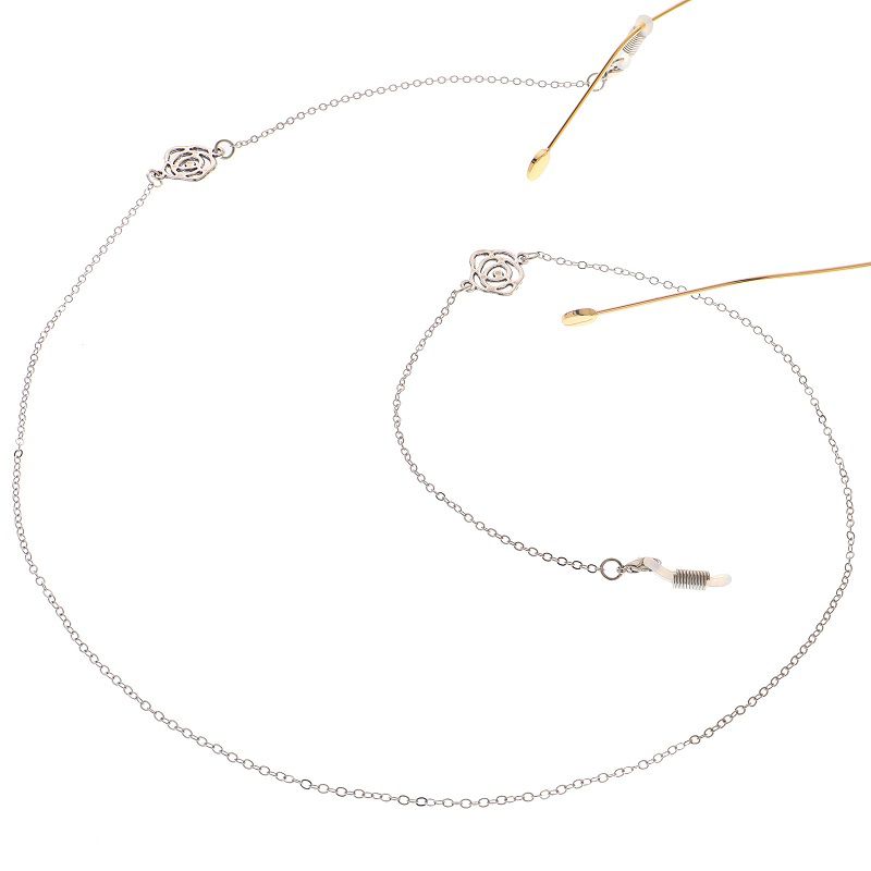 Металлическая нескользящая цепочка серебряного цвета, c цветком розы, для очков и масок GL062