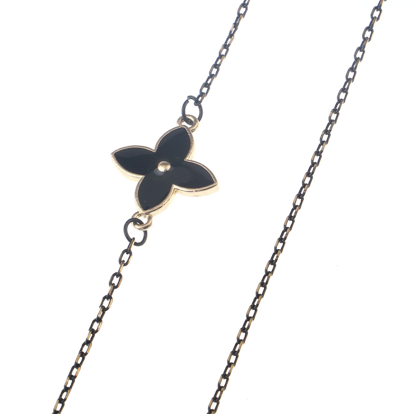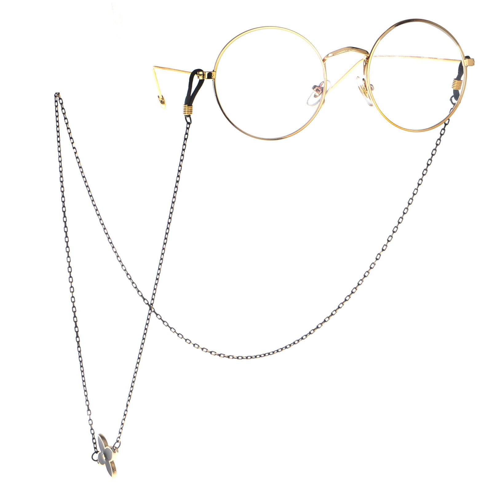 Металлическая нескользящая цепочка черного цвета, с цветком клевера, для очков и масок GL091